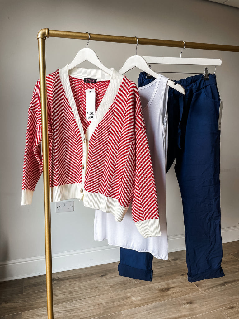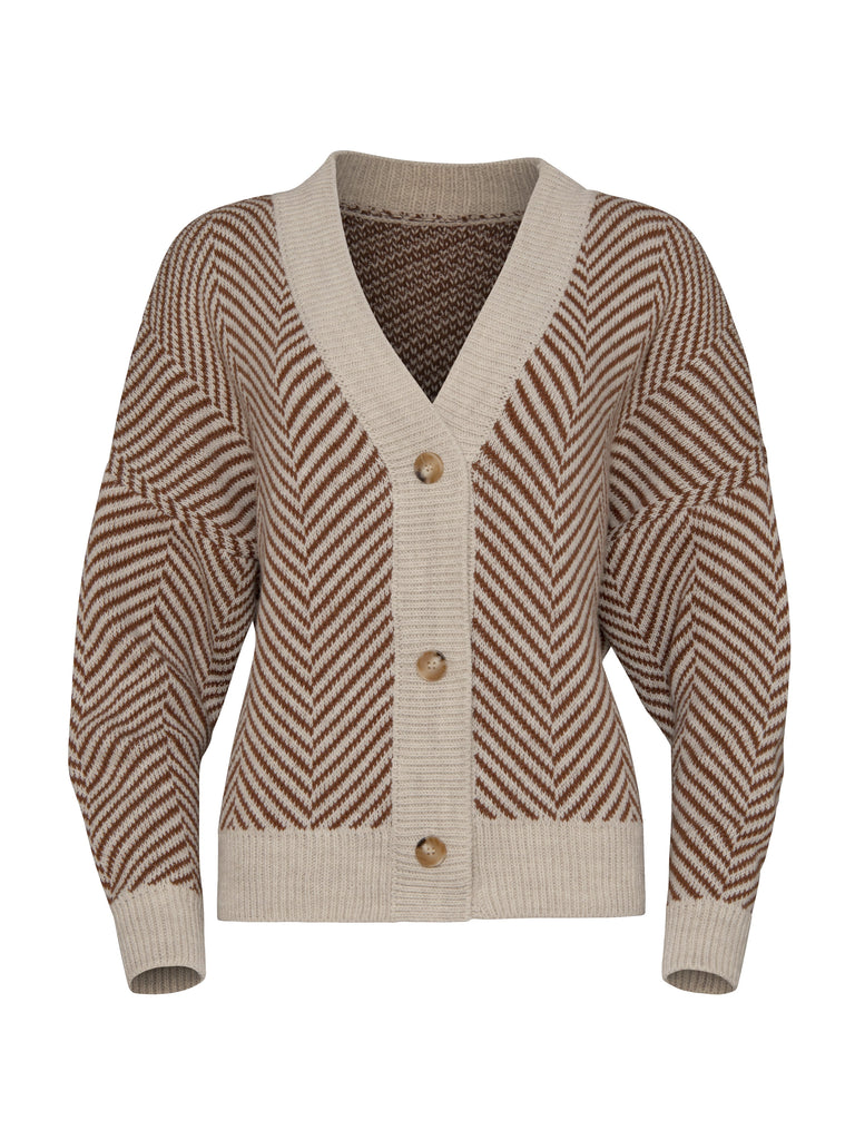 • Chevron Knit Button Cardigan: Knitted with a minimal chevron design, its the perfect layering piece to see you through every season.