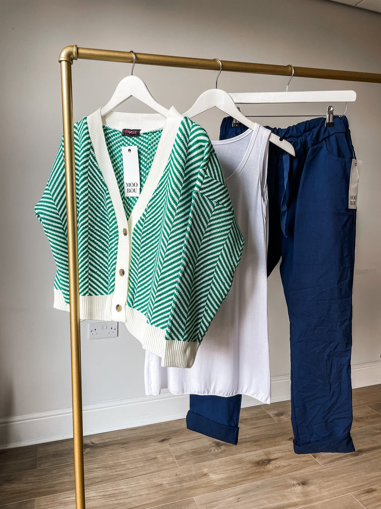 Style the full outfit with plain white trainers and a crossbody bag. The beauty of this outfit bundle allows a variety of styling, switch out the cardigan for a blazer for a smarter look. Or style the vest top with your favourite denim shorts and the cardigan with a satin slip skirt. The possibilities are endless!