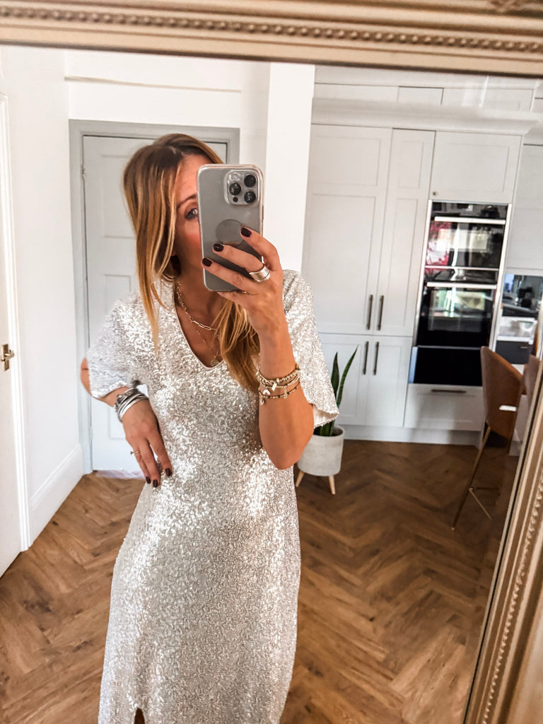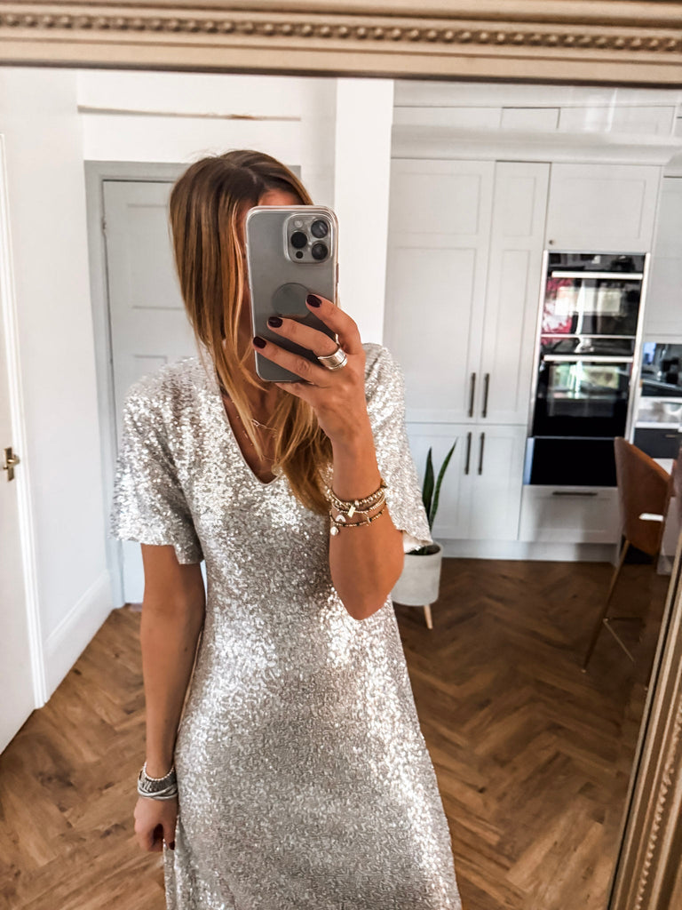Shine effortlessly in the ICHI Fauca Dress, where subtle elegance meets statement sparkle. With a flattering V-neckline, cap flare sleeves, and a sleek side split, it’s designed to move beautifully with you. The perfect choice for making an entrance with effortless confidence. Style this with a belt and heels!