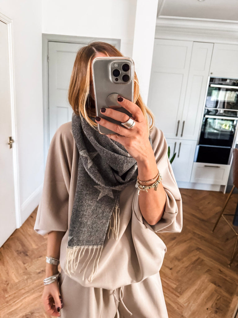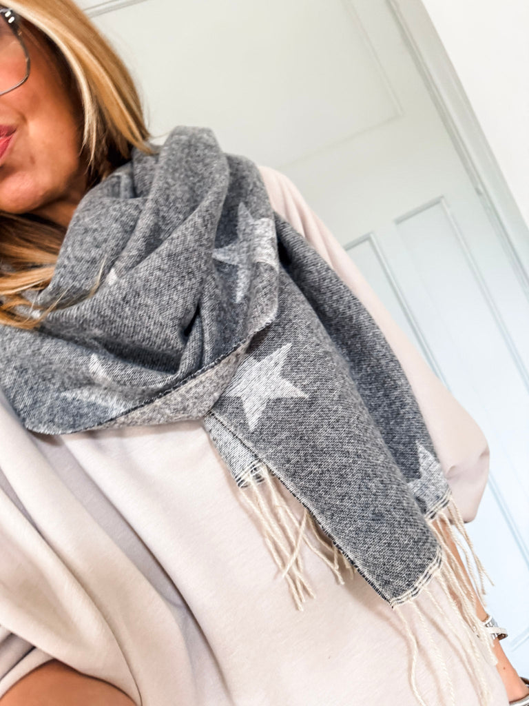 Wrap yourself in warmth and style with this Haven Phoenix Scarf , a winter essential crafted from luxuriously soft fabric. The bold star pattern and chic fringe detailing make it a statement piece for chilly days. Stay cozy and effortlessly fashionable all season long. Perfect for the winter season, why not pair this with one of our lovely coats on offer.