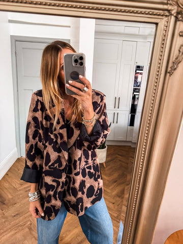 Make a statement with this bold leopard print blazer, designed to turn heads with effortless confidence. Featuring long sleeves, handy pockets, and a sleek button closure, it blends style with practicality. Dress it up or down for standout looks, day or night.