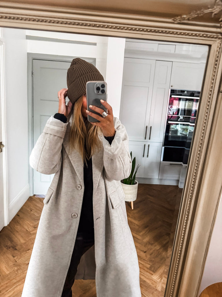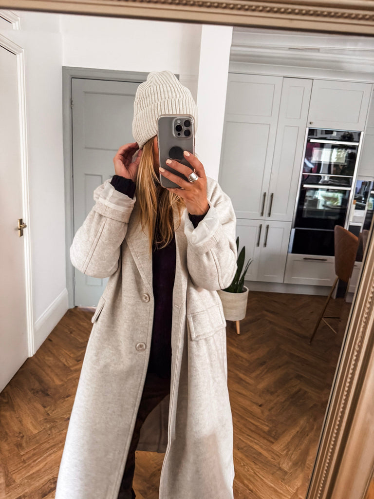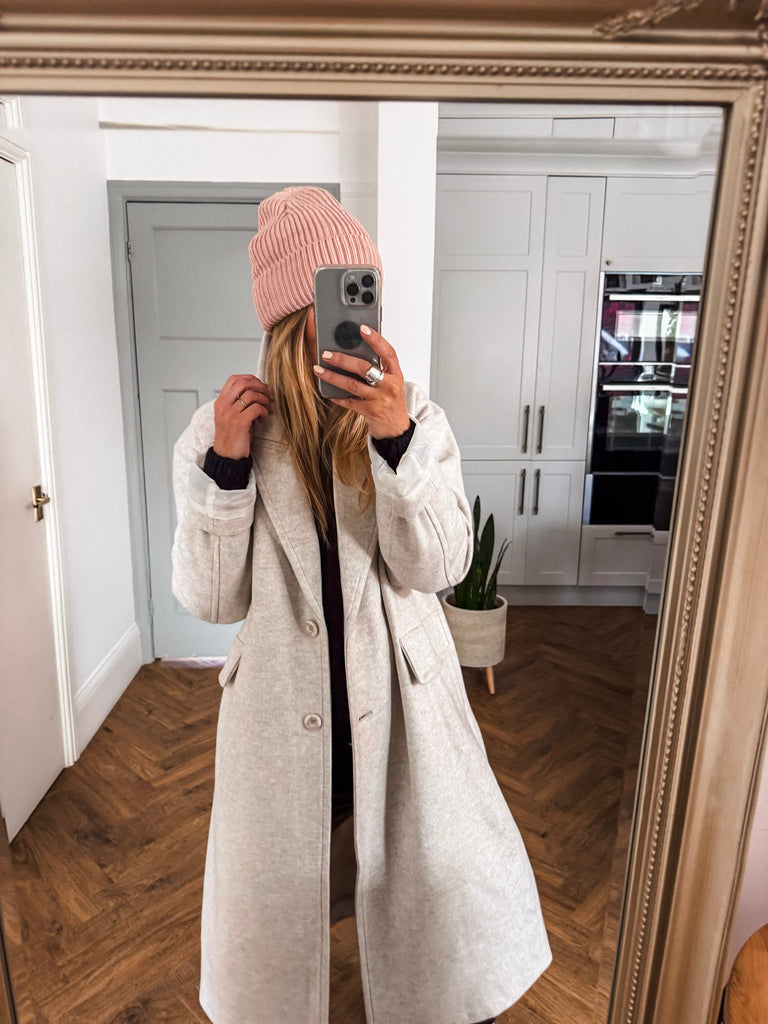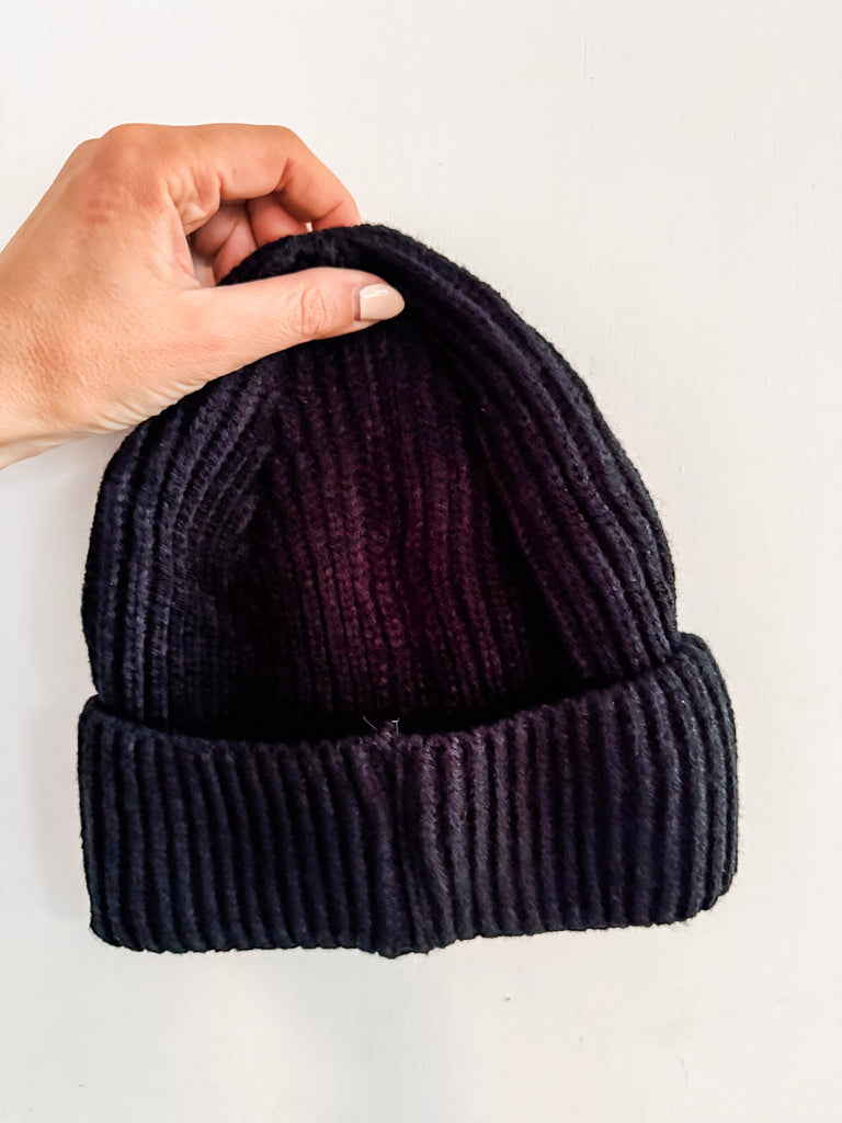 Beanie in a soft rib knit with a turn-up at the hem. Style this with one our coats this winter!