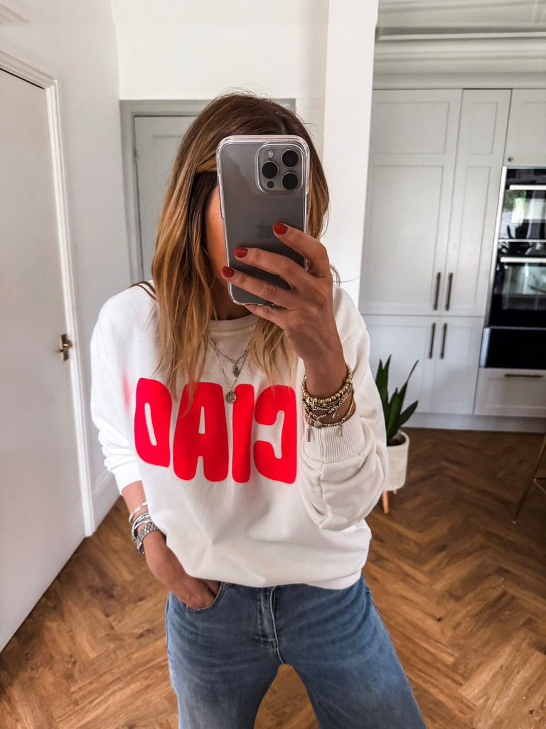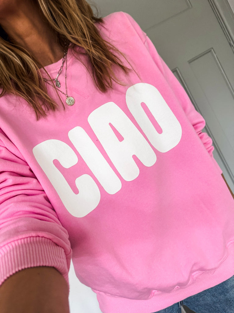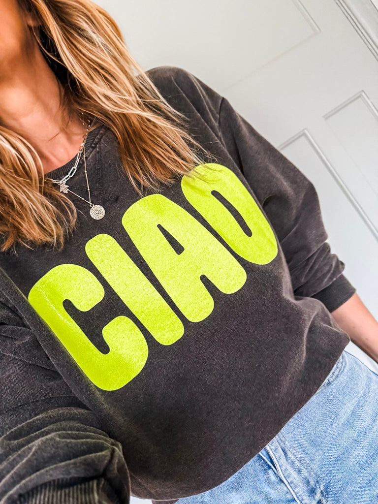 Whch is your favourite colour?? they are soo nice!! Effortlessly cool and cozy, the Ciao Sweatshirt features a relaxed fit and stylish round neck for all-day comfort. The bold "Ciao" slogan adds a laid-back, statement touch. Perfect for casual days when you want to stay chic with minimal effort. Fabric is 100% cotton!!