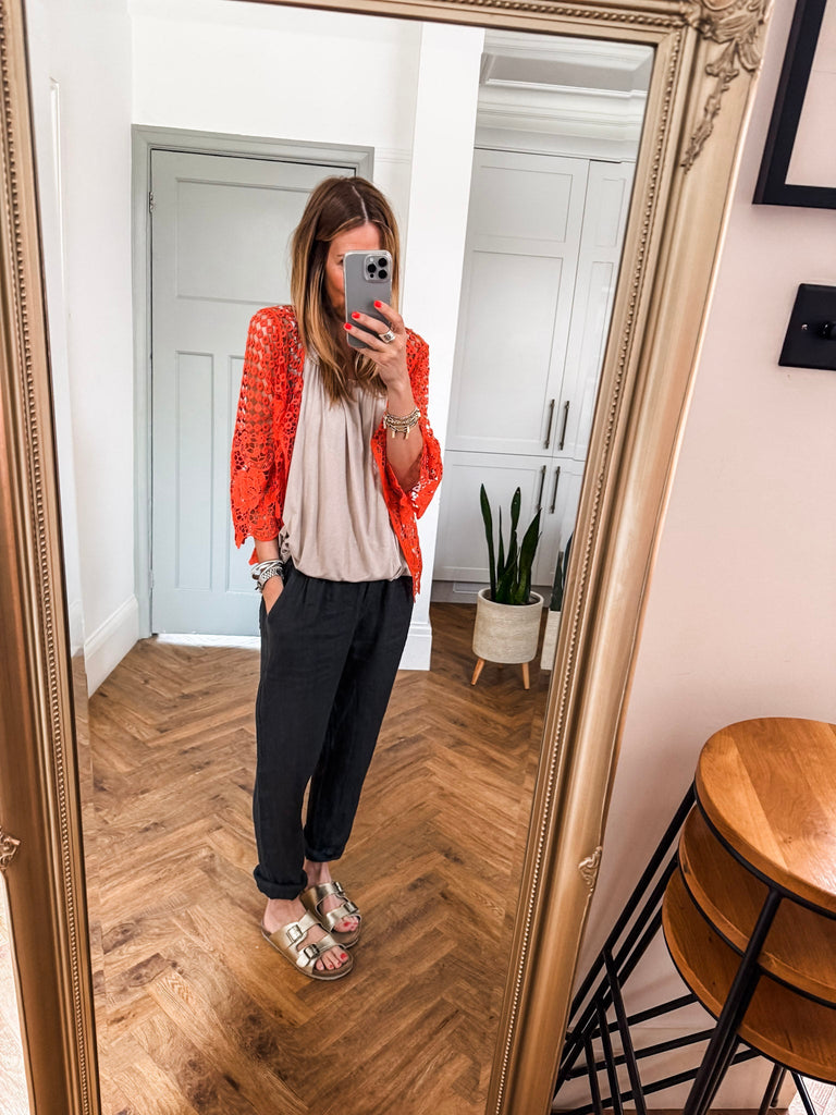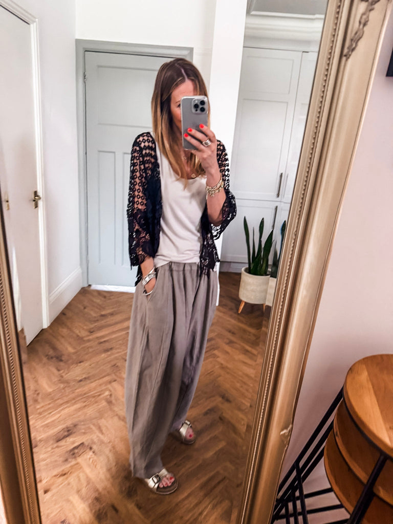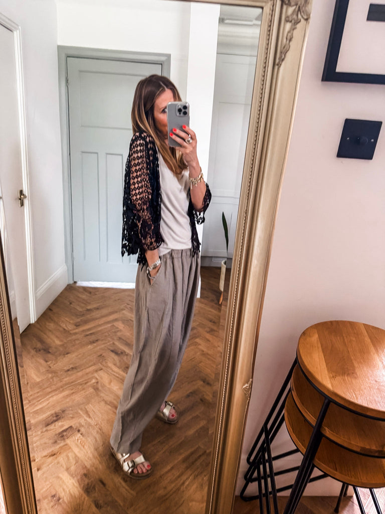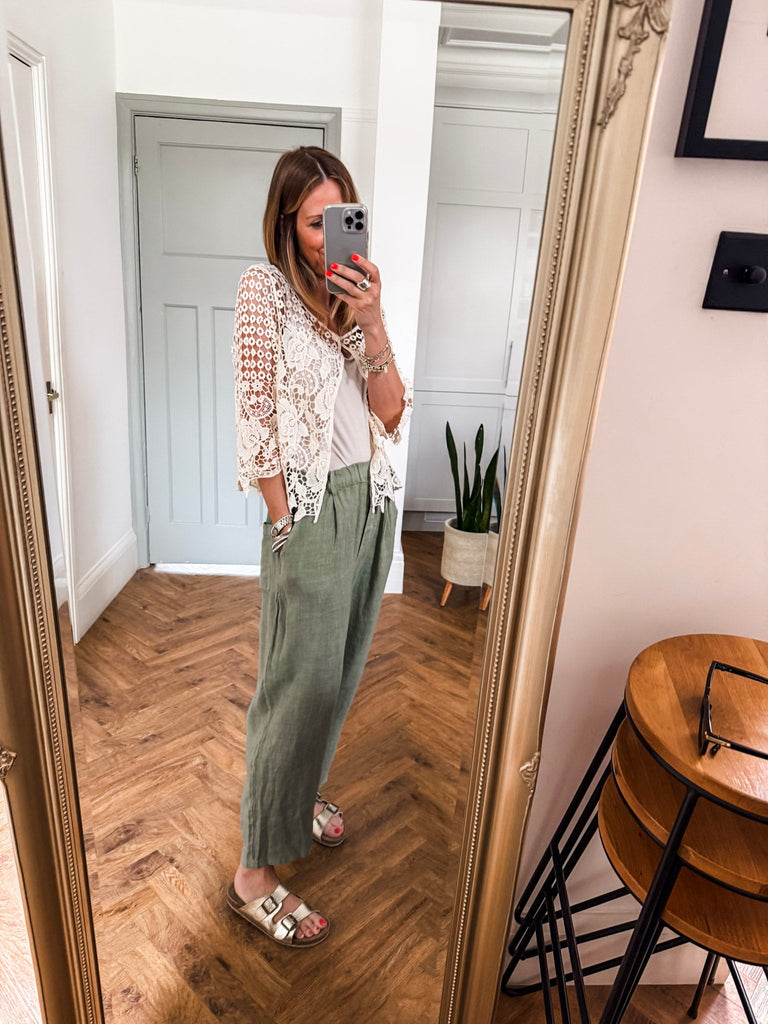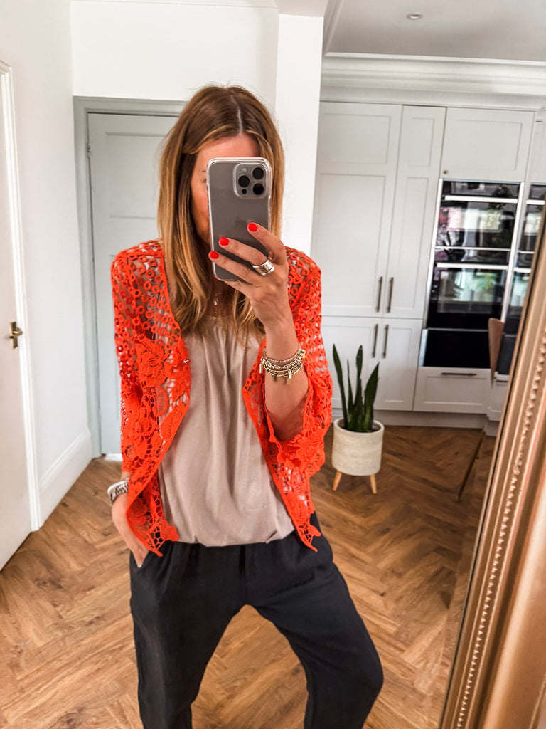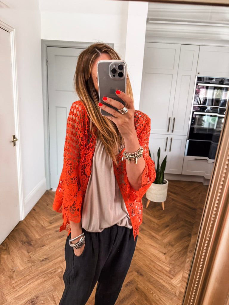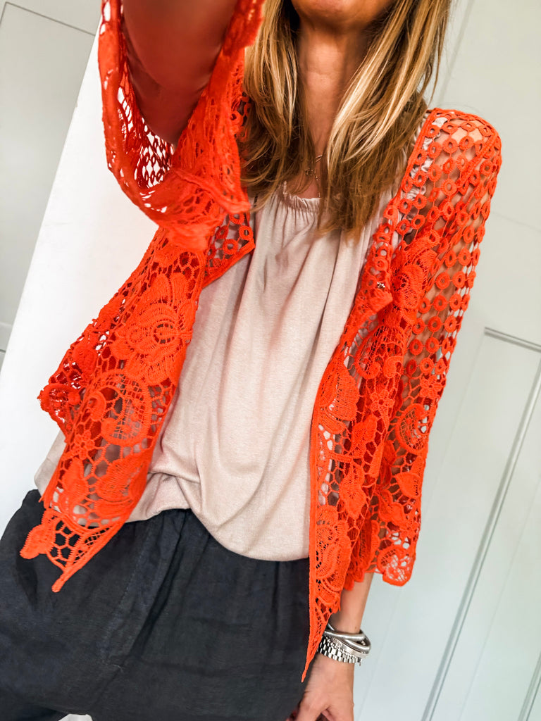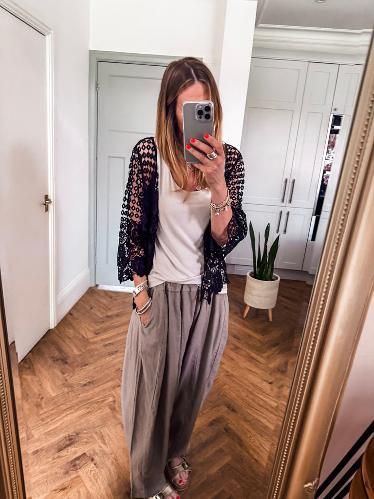 Our new lovely Crochet Shrug — where delicate lace meets effortless charm. Featuring 3/4 sleeves and a touch of sparkle from a rhinestone button, it’s the perfect layering piece for any occasion. Comfortable, versatile, and undeniably chic. Perfect for that added layer.