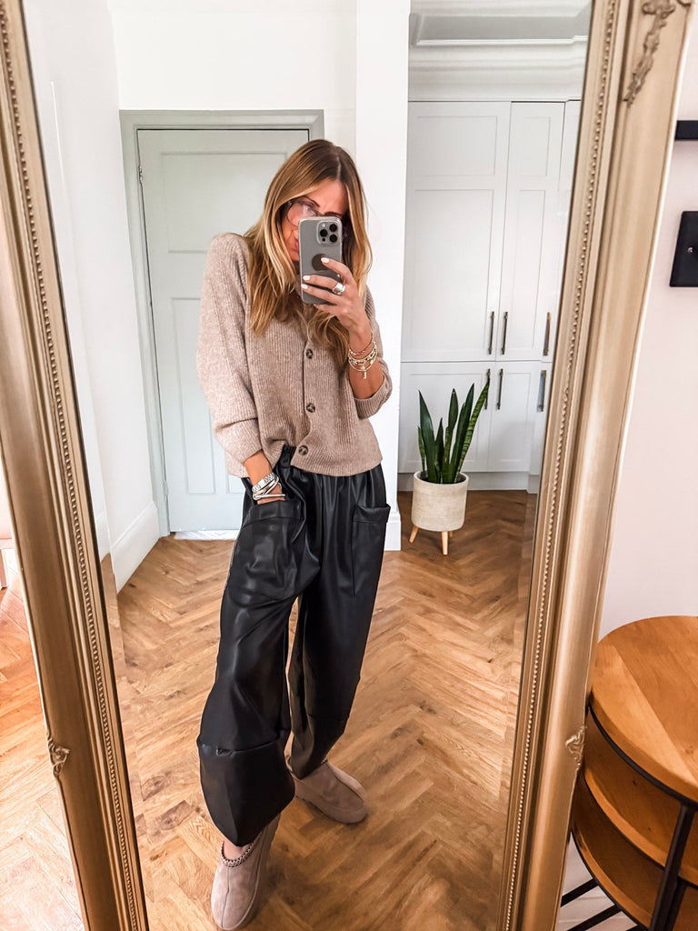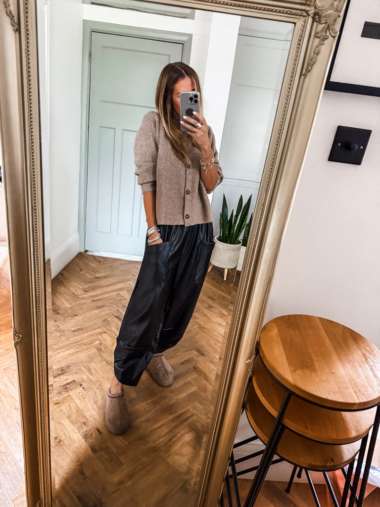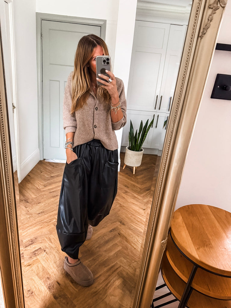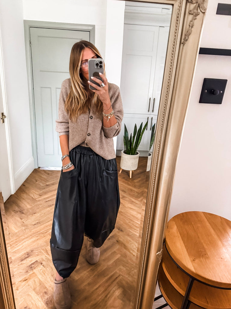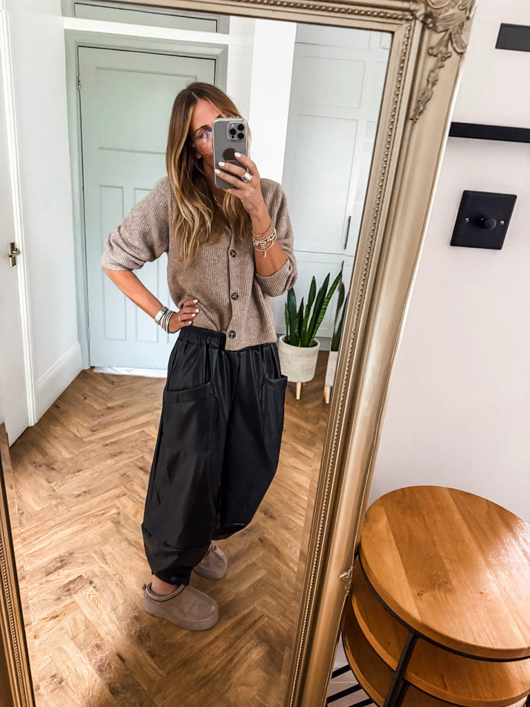 We love a cool and casual look, these soft faux leather trousers are comfortable to wear and the balloon shape creates a relaxed silhouette.