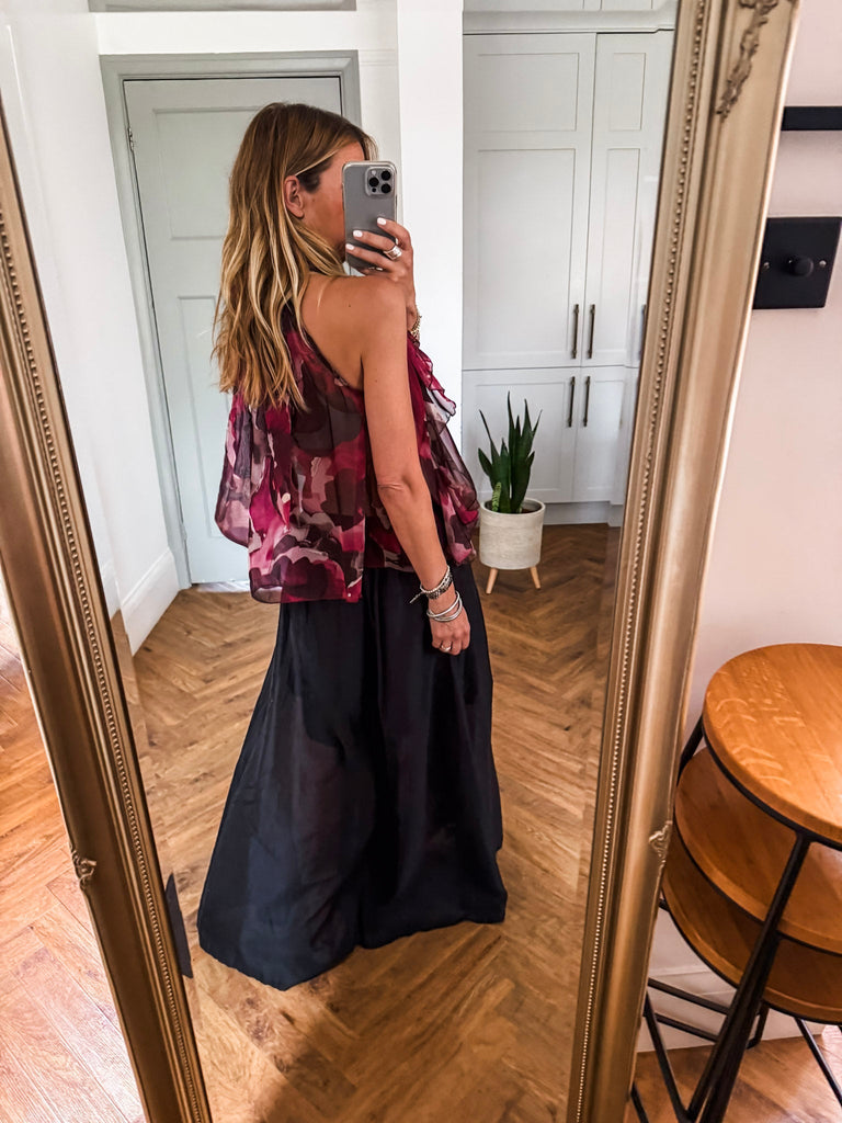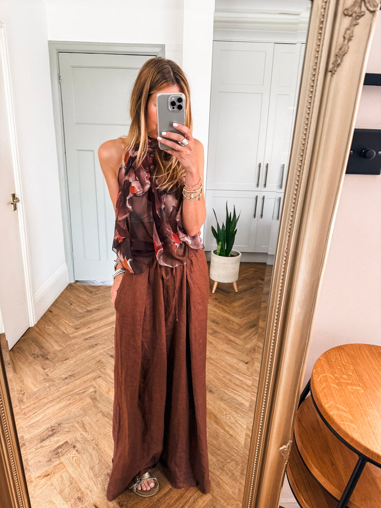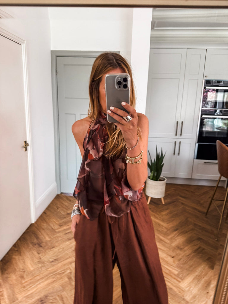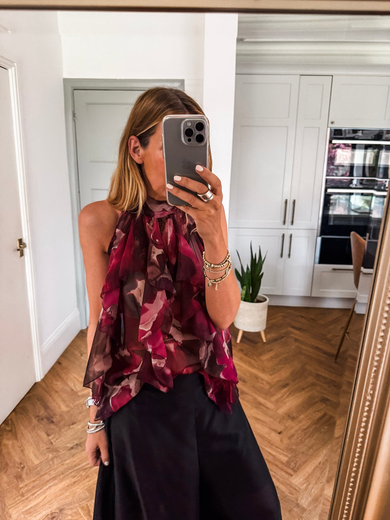 Halter Neck Ruffle Abstract Top