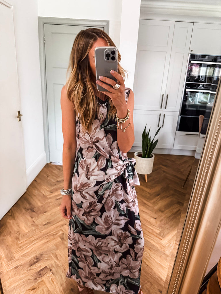 We love this dress for its dreamy floral print and flattering, flowy silhouette. The side split adds just the right amount of edge, while the shirred sleeves offer a soft, feminine touch. It’s the perfect blend of comfort, confidence, and standout style.