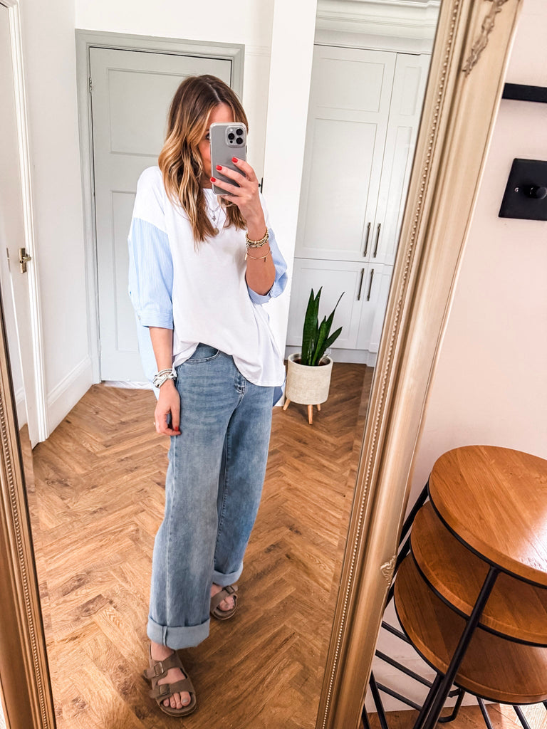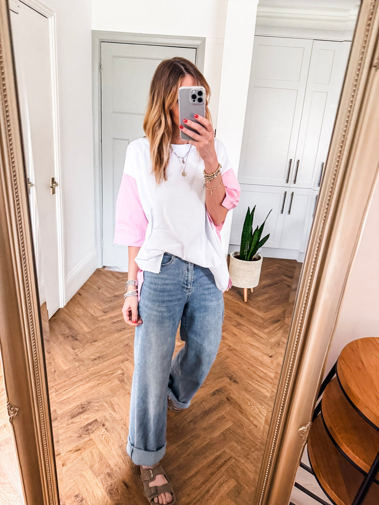 Effortlessly cool and stylish, this Pinstripe Detail T-Shirt blends classic pinstripes with a modern relaxed fit. The longer back hem and round neck add a contemporary edge, making it perfect for any casual occasion. A must-have staple for those who love comfort with a touch of sophistication.