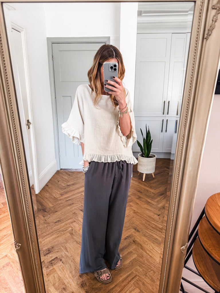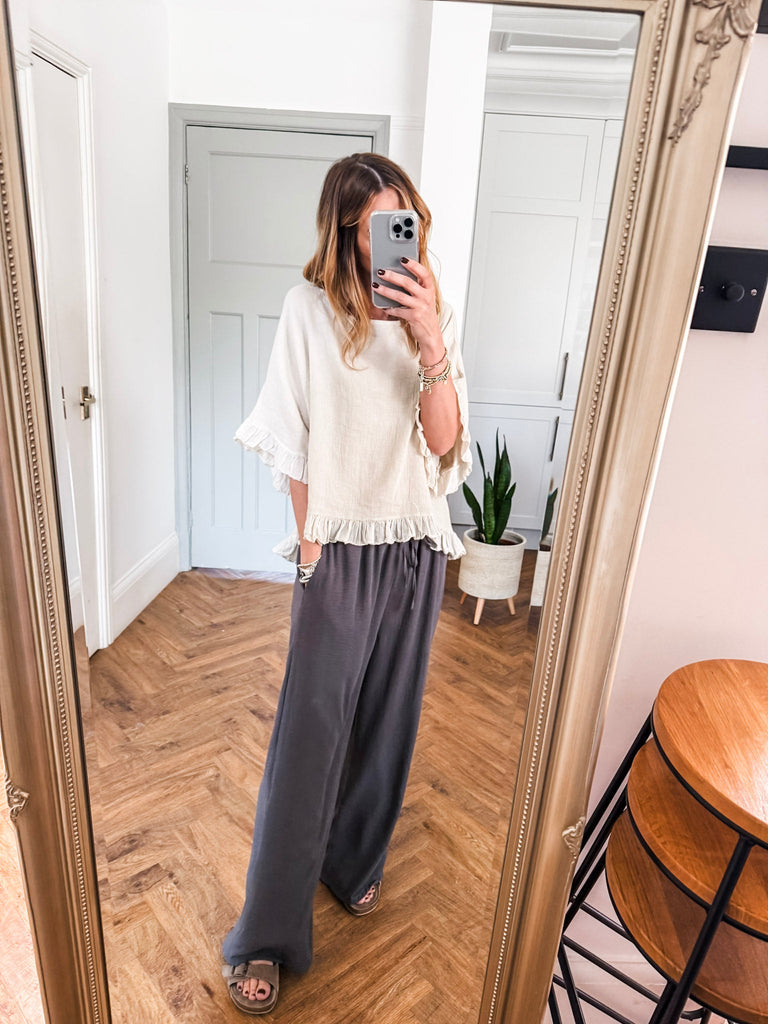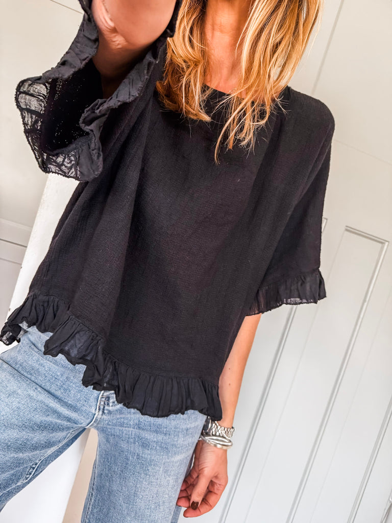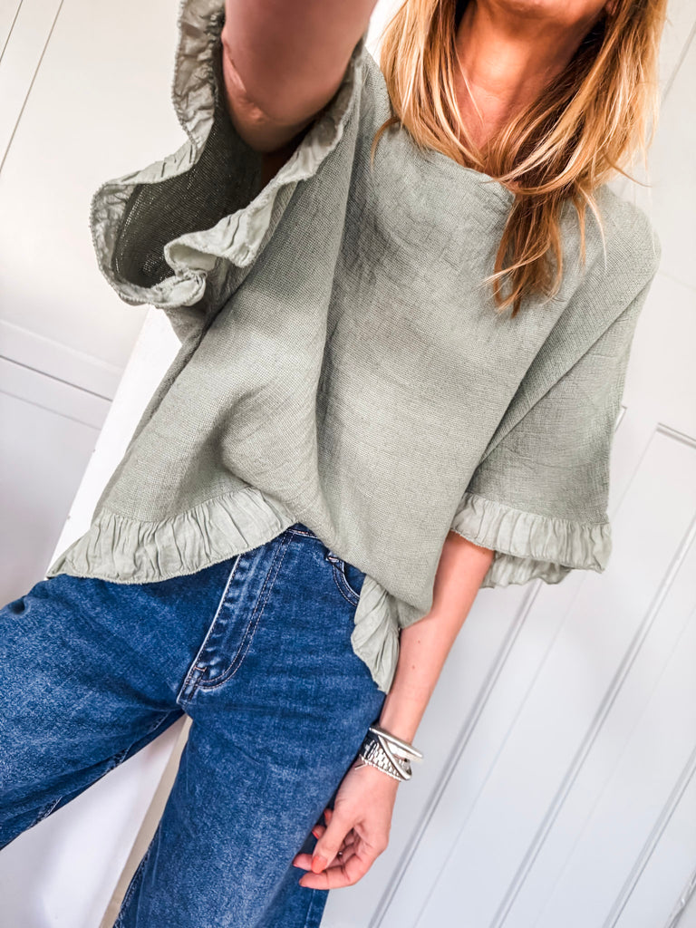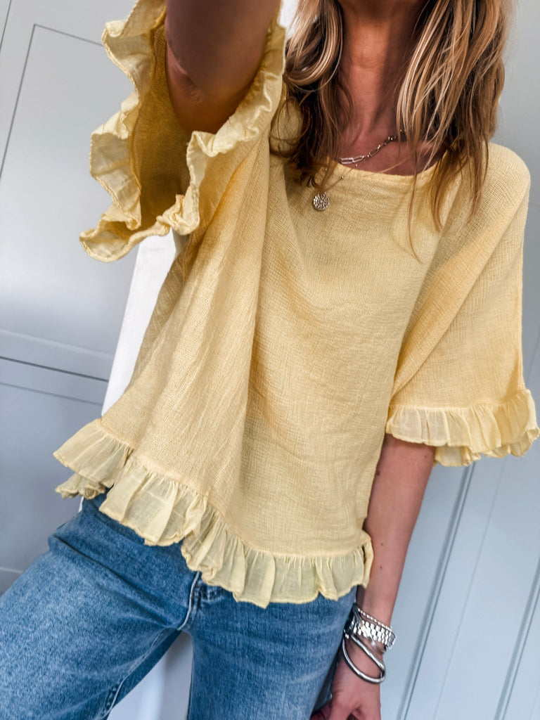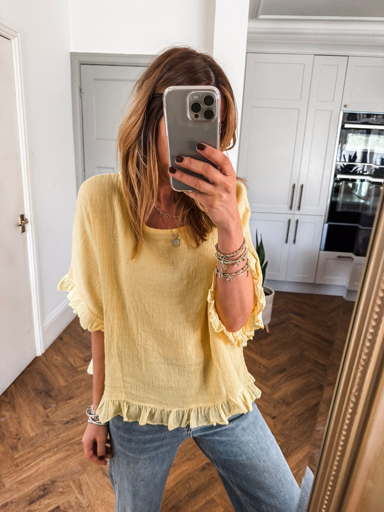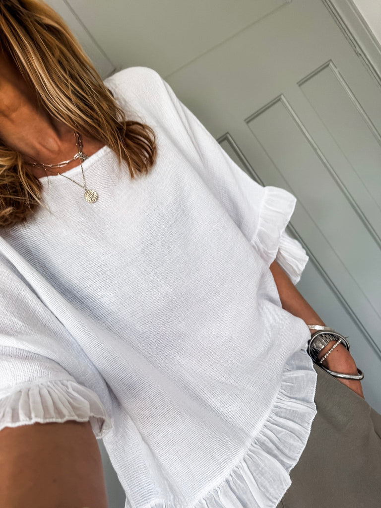 Get ready for summer with this stylish and comfortable Waffle Cotton Frill Hem Top. The relaxed fit, round neck, and short sleeves make it perfect for casual wear, while the frill details add a touch of elegance. Made from lightweight and breathable waffle cotton material, this top is a must-have for the warm weather. The key hole button fastening ensures a secure fit, so you can feel confident and comfortable all day long.