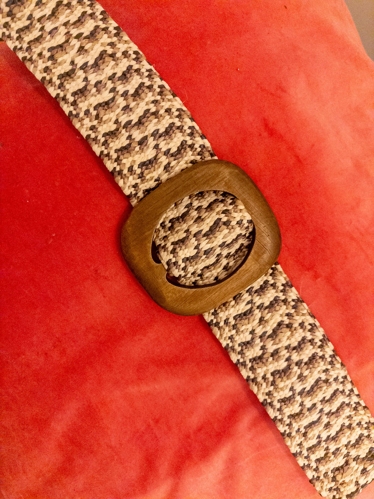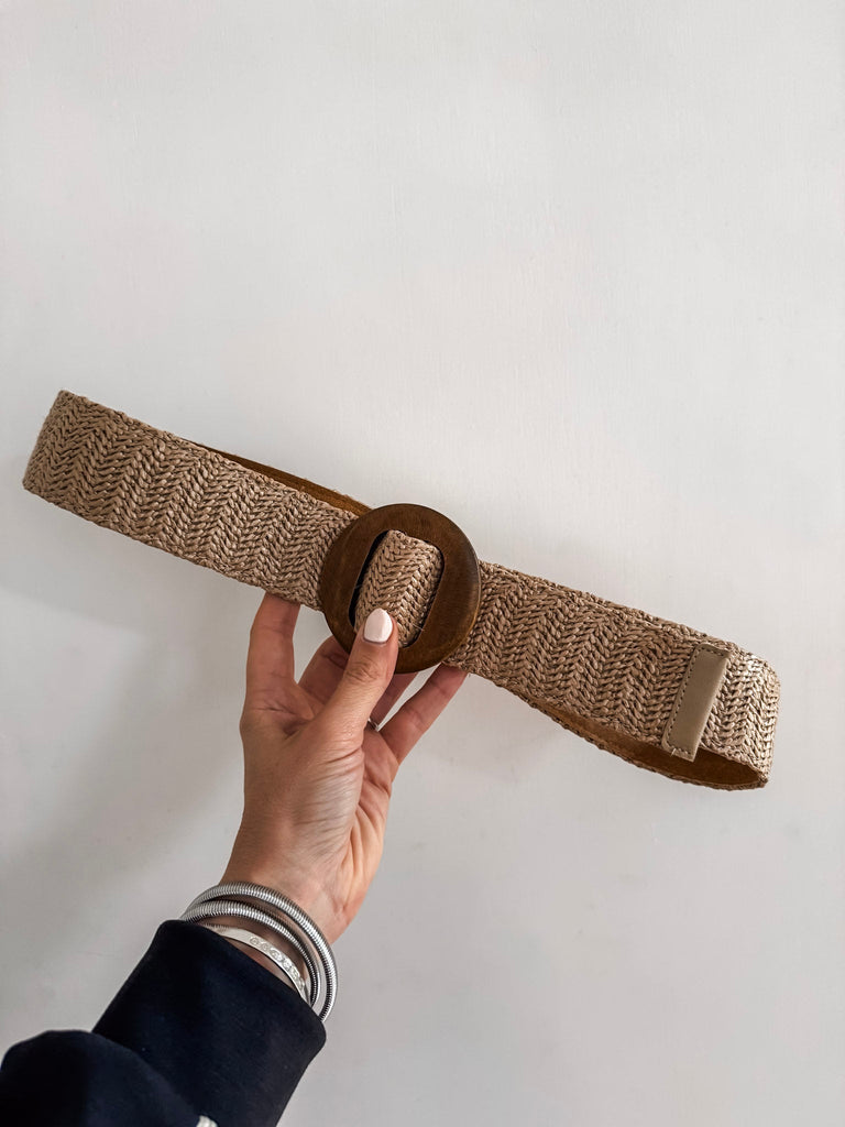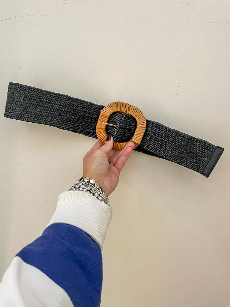 Style your look with the Woven Round Wood Buckle Belt—where texture meets natural charm. The detailed weave and wooden buckle add effortless style with a relaxed, earthy edge. A versatile finishing touch for any summer outfit.