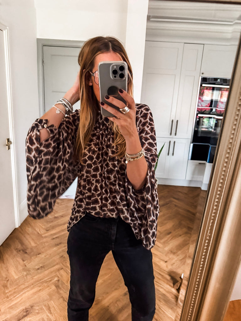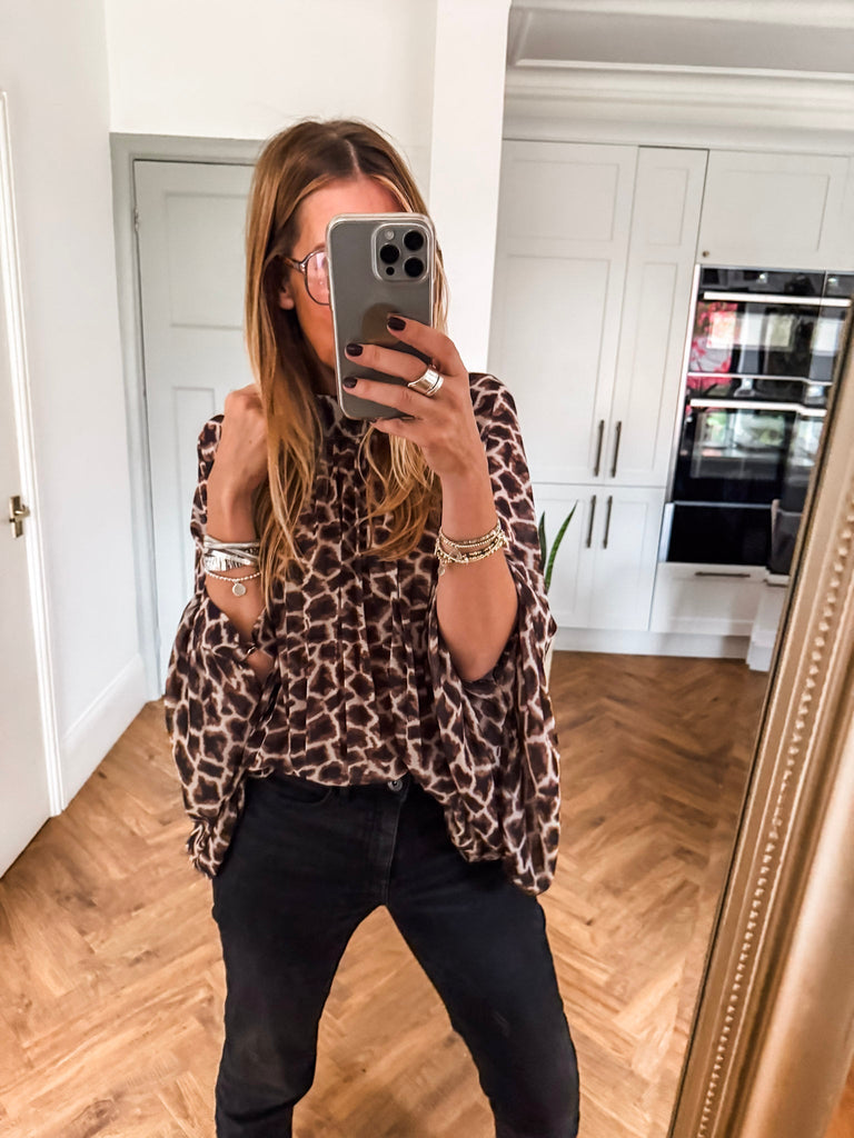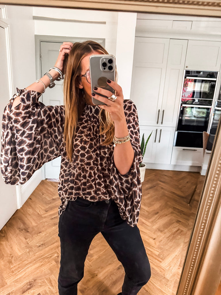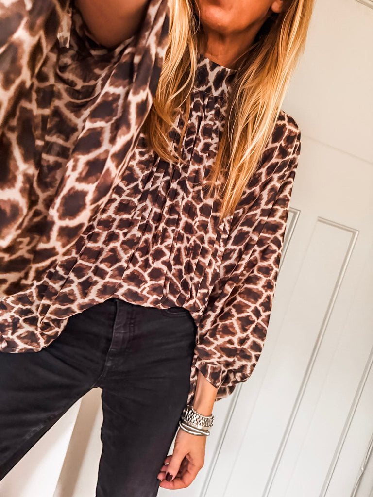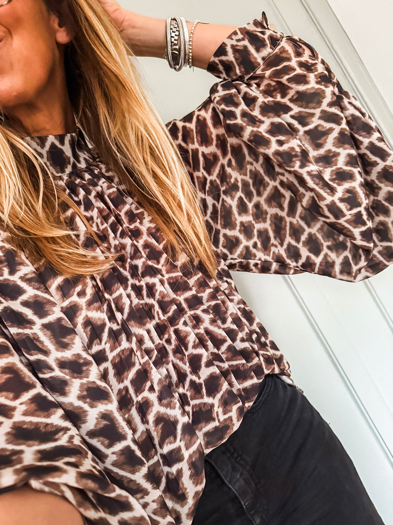 Add sophistication and glamour to your look with this Leopard Pleated Blouse. Features a pleat style, high neck and balloon sleeves, and button detail at the back. A perfect statement piece for your wardrobe.