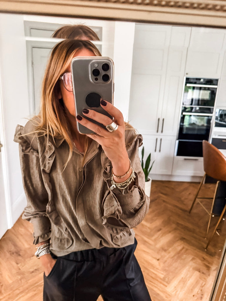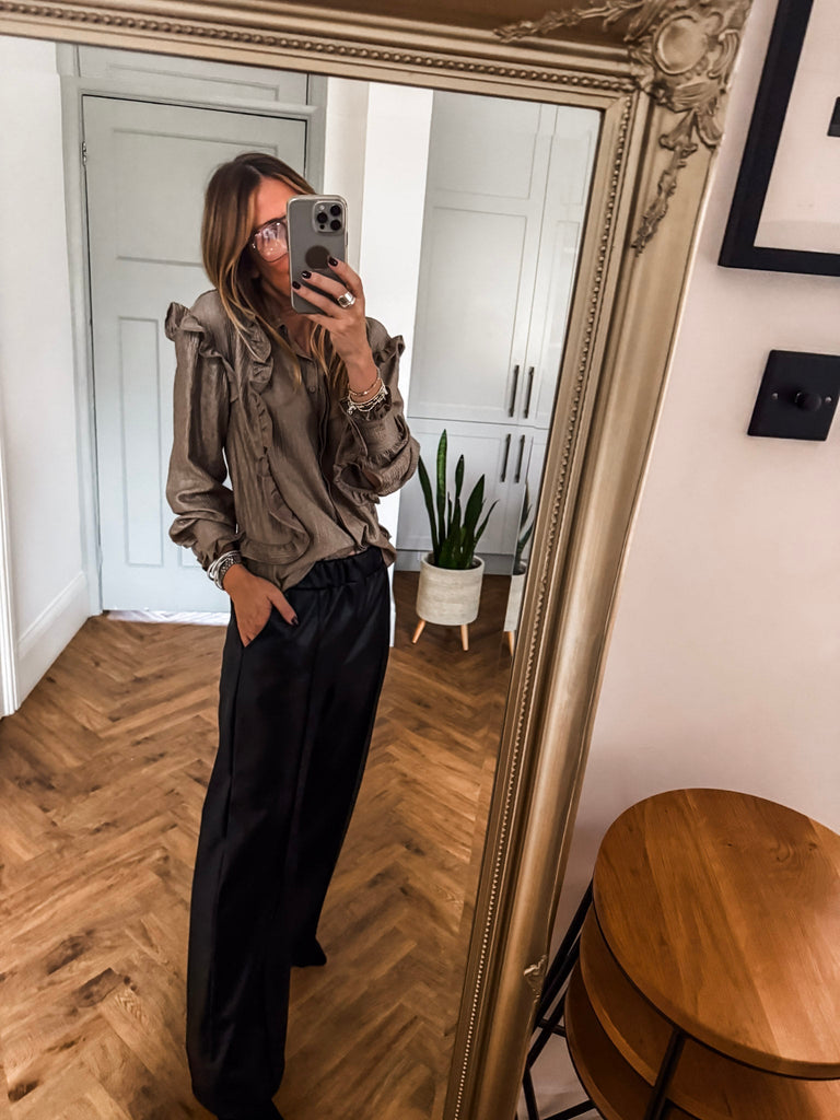 Bring subtle glamour to your everyday style with the Soaked in Luxury Laurie Karolina Shirt. Its softly shimmering fabric and delicate frill details add effortless elegance to any look. Perfect for dressing up or down, it’s a timeless piece that always feels refined.