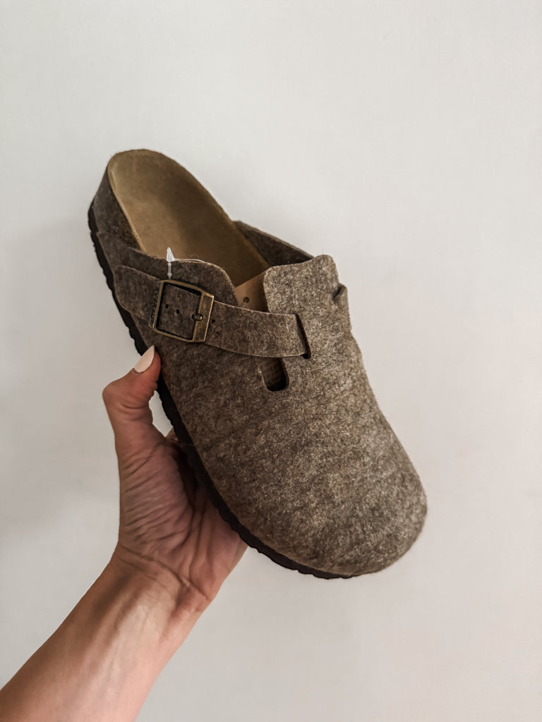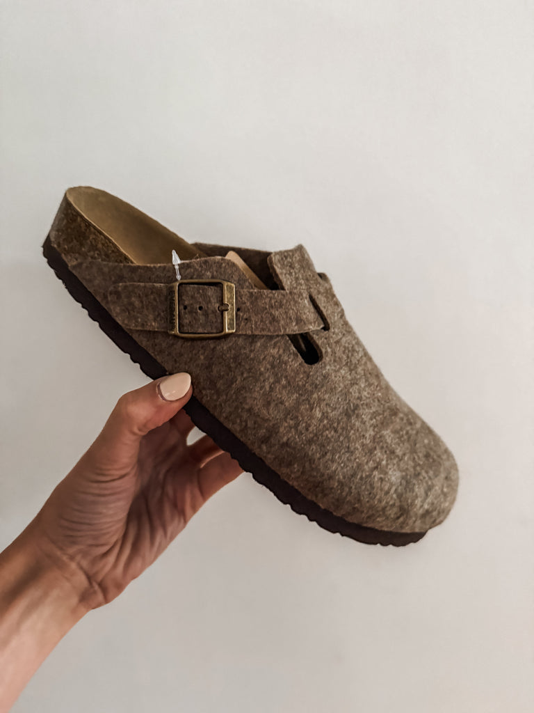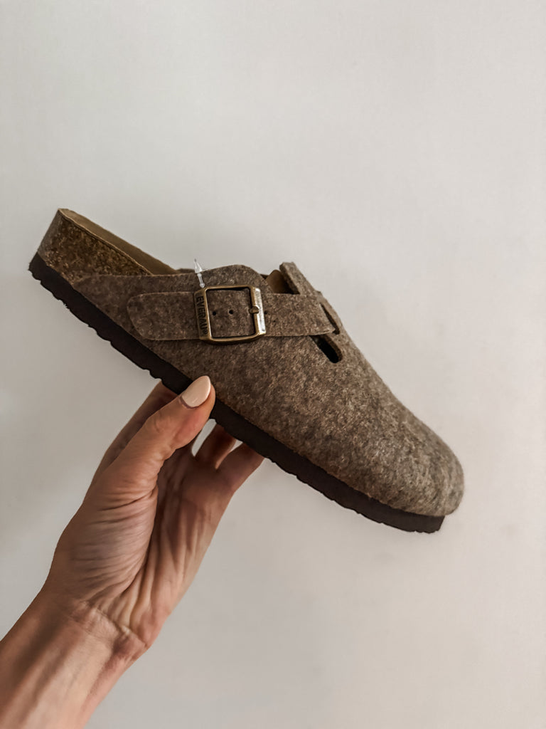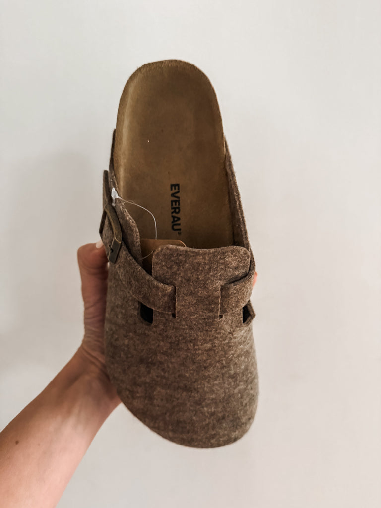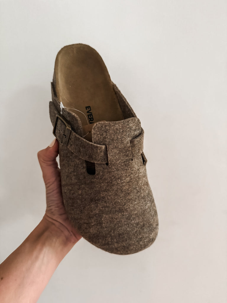 We love the these mules for their perfect mix of comfort, simplicity, and timeless style. The felt fabric and comfortable fit makes them the perfect cross function shoe, while the flat heel keeps every step easy and relaxed. They're the kind of clogs you’ll reach for again and again, school run, nipping to the shops out to do errands the perfect practical shoe.