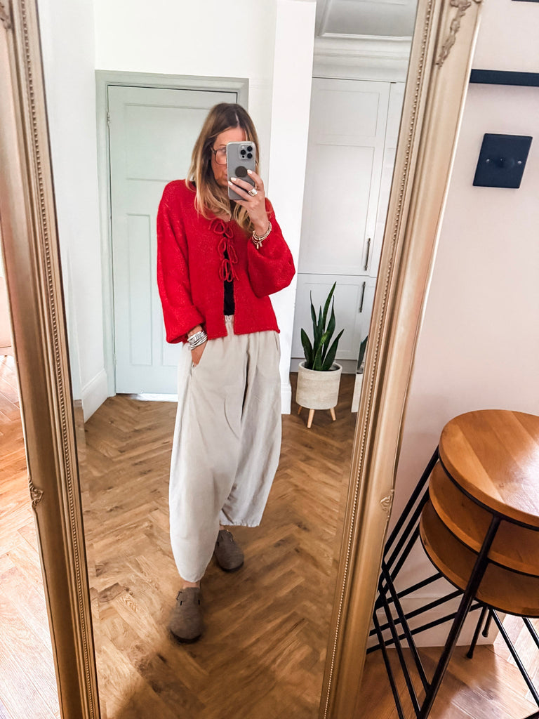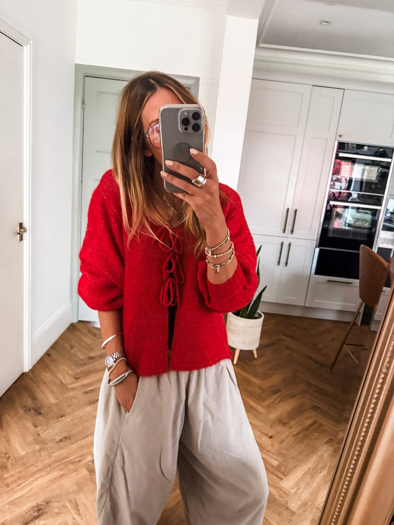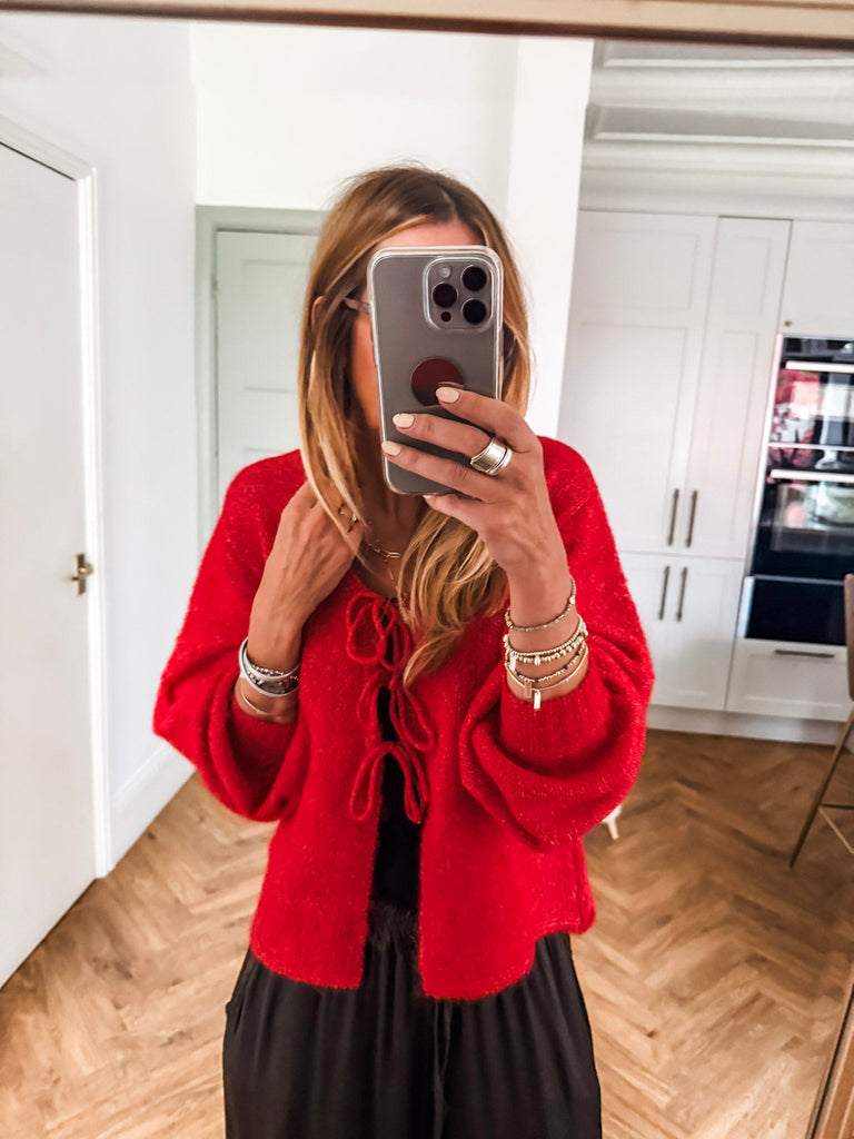 This gorgeous warm, cosy and chic Stripe Knit Tie Front Cardigan , designed with long sleeves and an relaxed fit. The trendy crew neck adds a bold touch, perfect for cooler days. A must-have piece that blends style and comfort effortlessly. Perfect for those lovely walks and school runs. Pair this with jeans/leggings and your go to trainers.