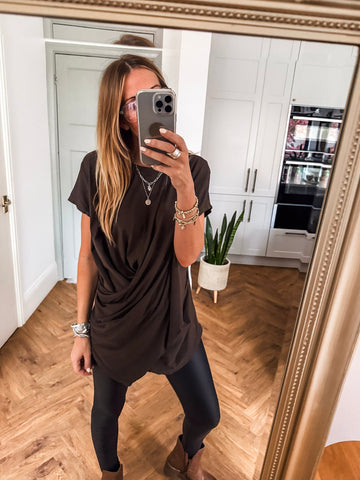 Style your everyday look with this effortlessly cool draped t-shirt. Featuring a relaxed fit, round neck, and flowing front detail, it brings a modern edge to a classic silhouette. Wear it solo or layered—either way, it’s comfort with a statement.