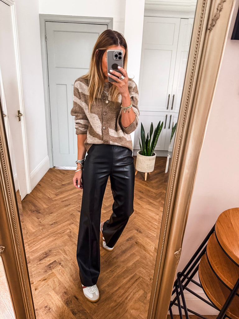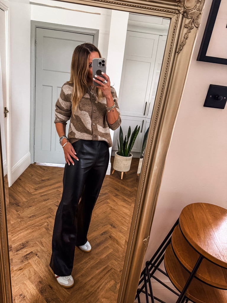 Style the Mallie Cardigan with high-waisted jeans and ankle boots for an effortlessly cool daytime look. Layer it over a sleek black dress for bold contrast on a night out. Add gold accessories to elevate the fierce print with a touch of polish.