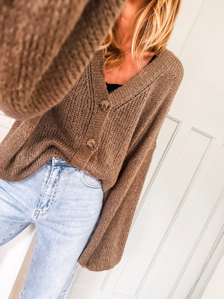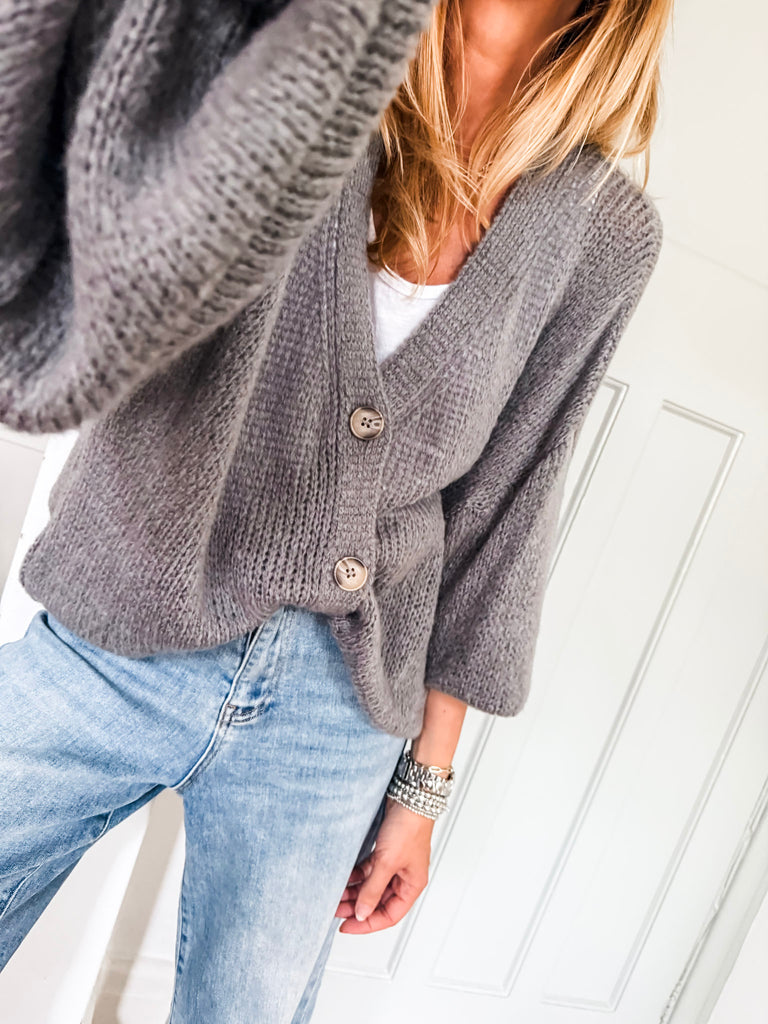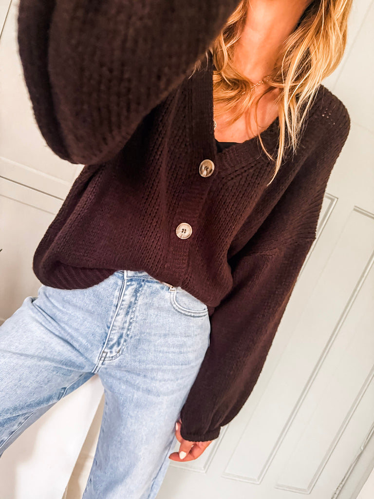 Balloon Sleeve Button Cardigan