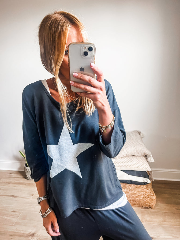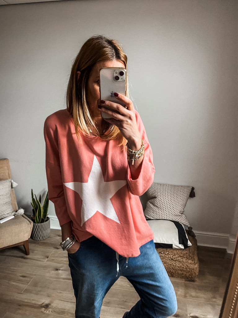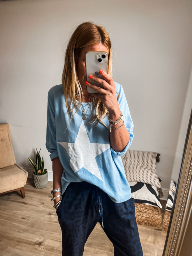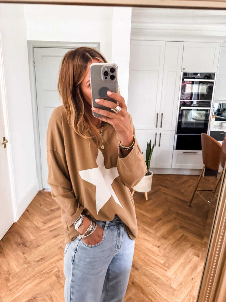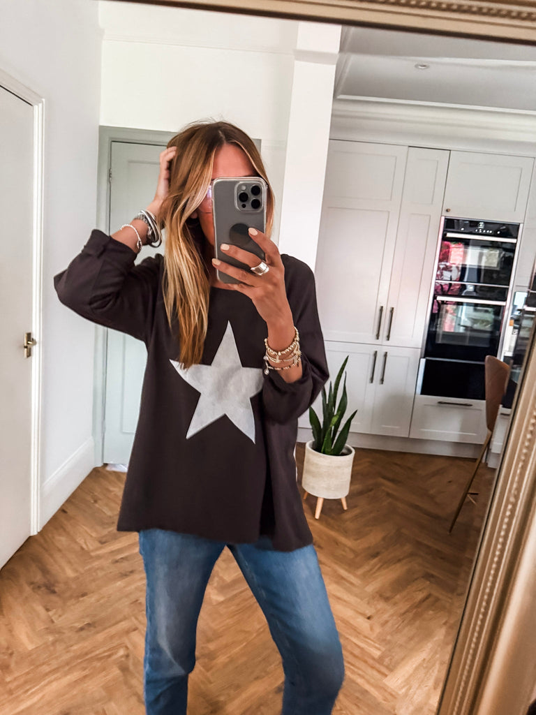 A sweatshirt is an essential for any wardrobe and this relaxed shape is perfect for throwing on with jeans, joggers or even a midi skirt. Made with a beautifully soft cotton with a fun star print it's as comfortable as it is stylish.