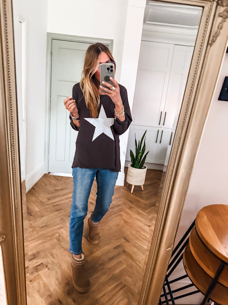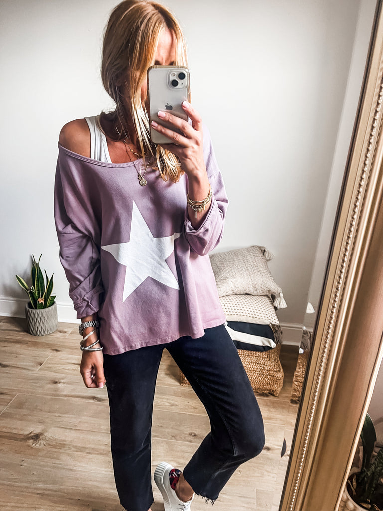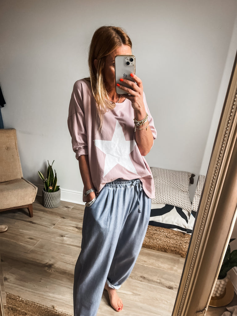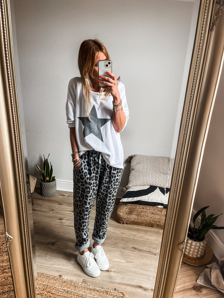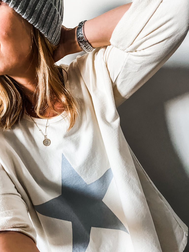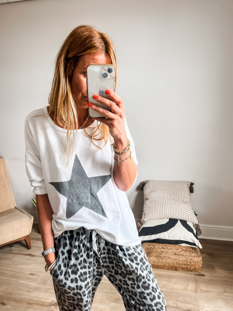 A sweatshirt is an essential for any wardrobe and this relaxed shape is perfect for throwing on with jeans, joggers or even a midi skirt. Made with a beautifully soft cotton with a fun star print it's as comfortable as it is stylish.