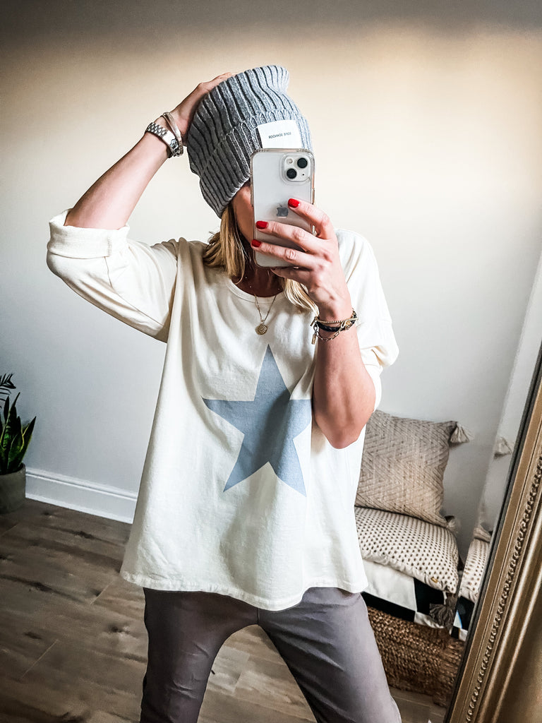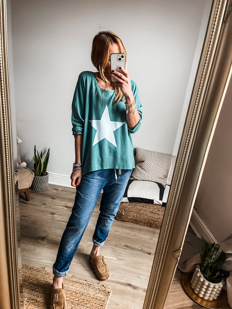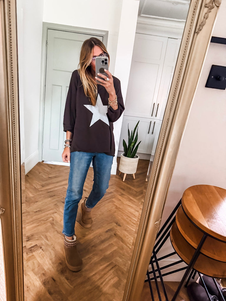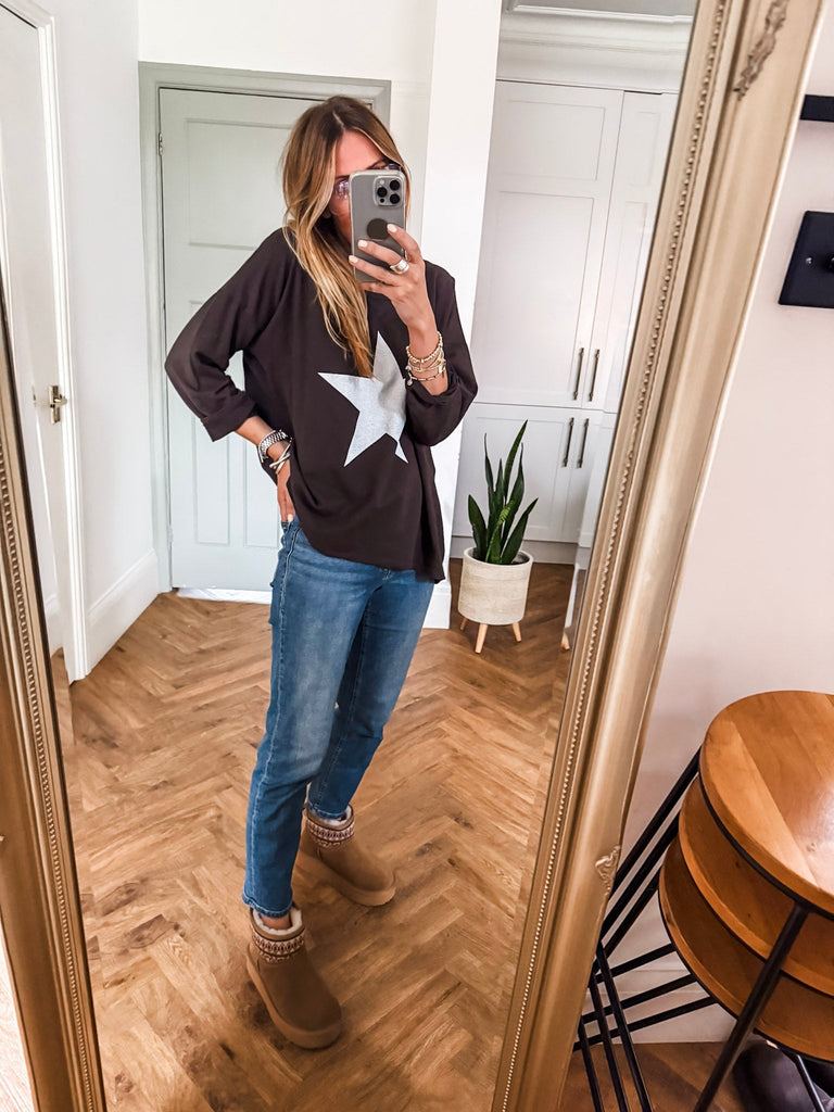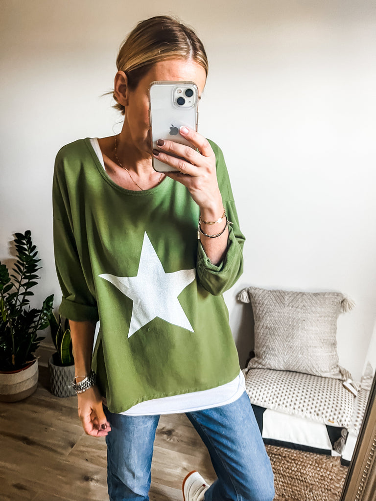 A sweatshirt is an essential for any wardrobe and this relaxed shape is perfect for throwing on with jeans, joggers or even a midi skirt. Made with a beautifully soft cotton with a fun star print it's as comfortable as it is stylish.