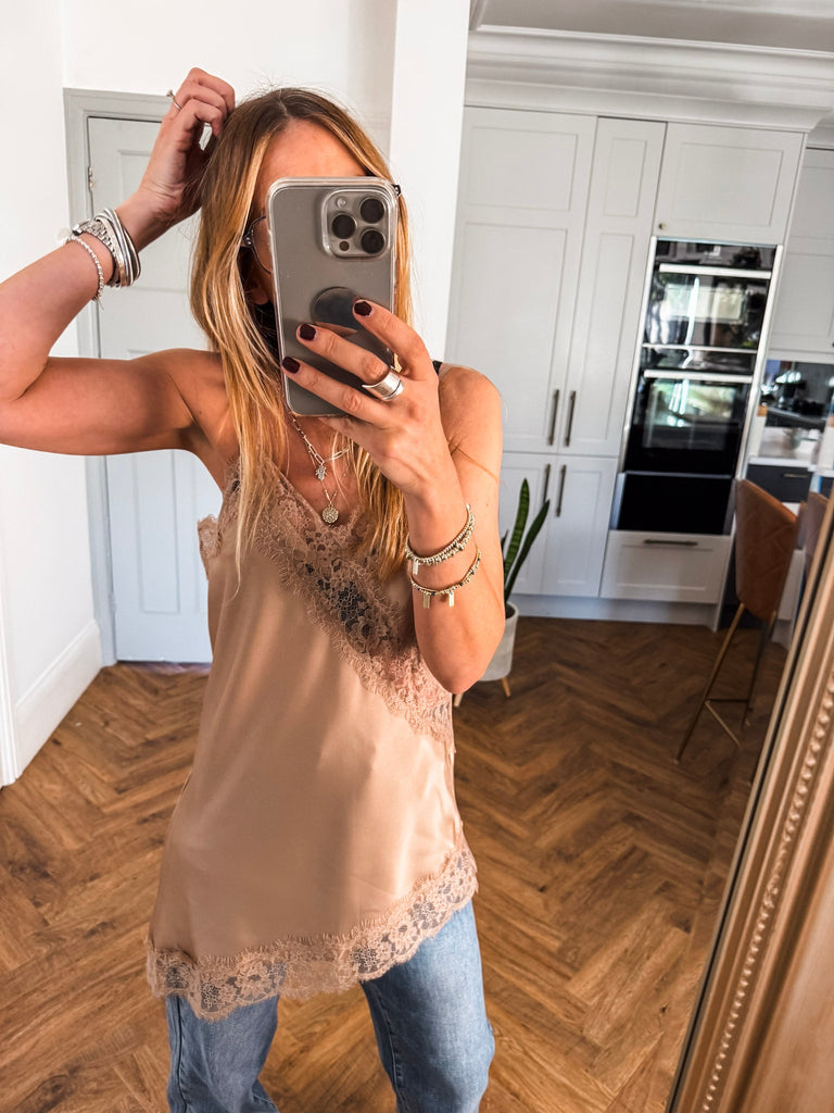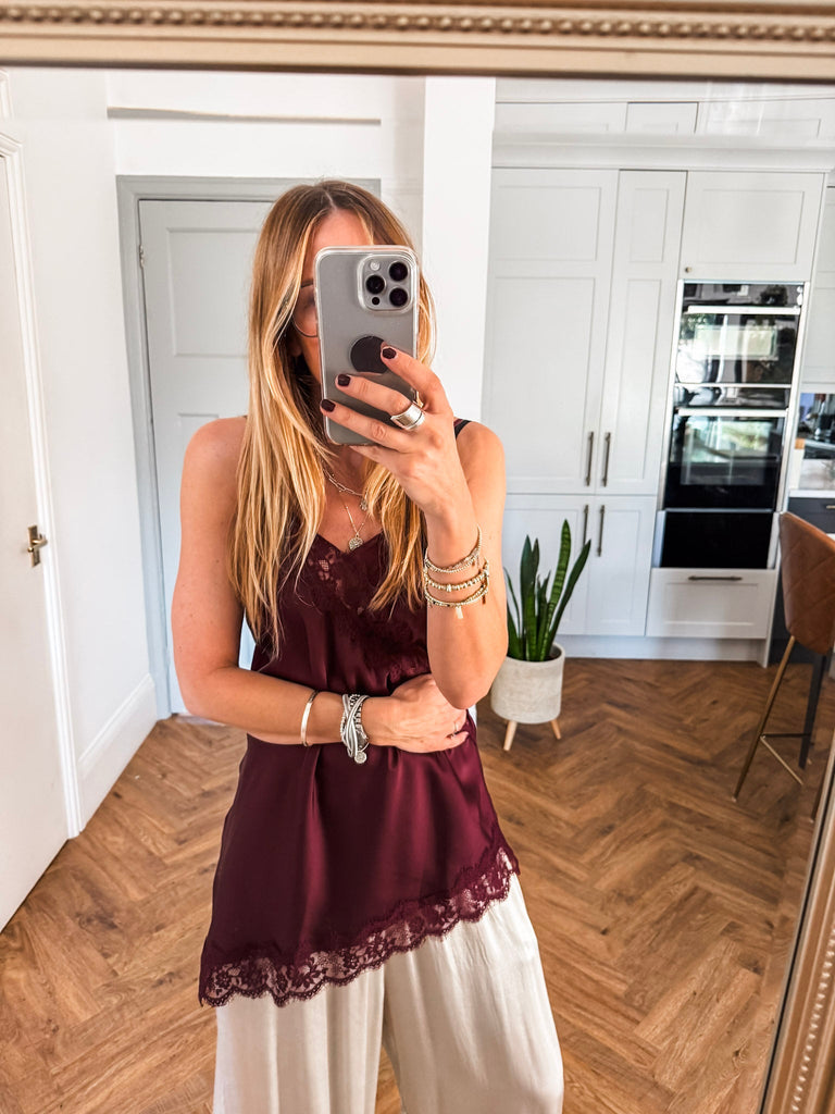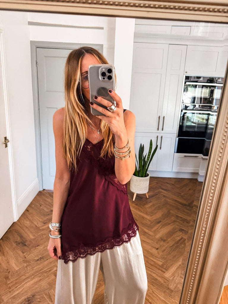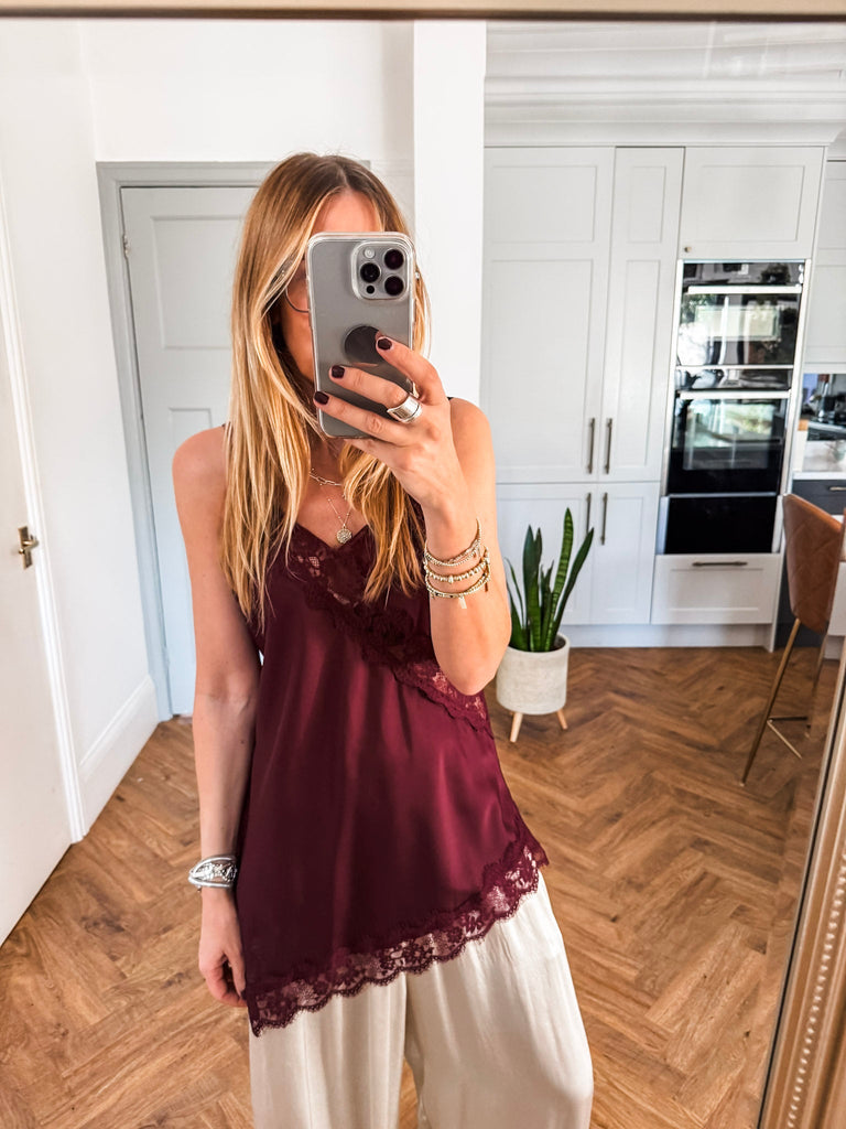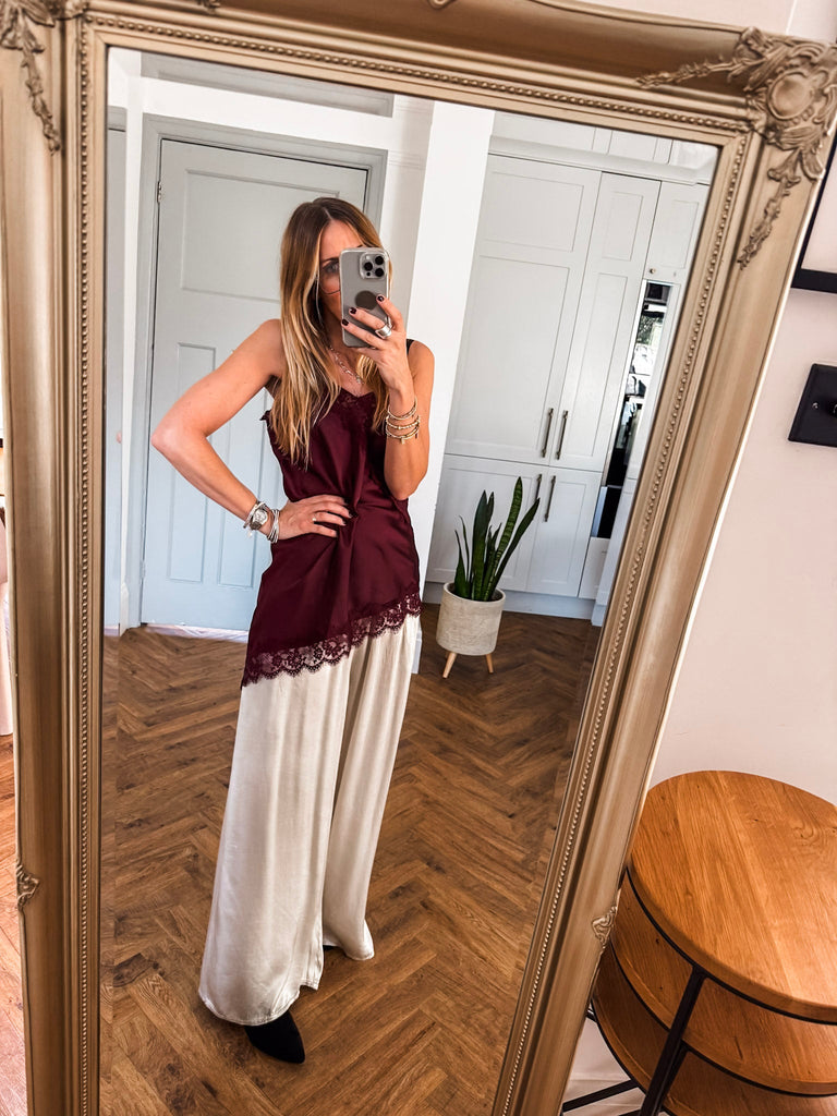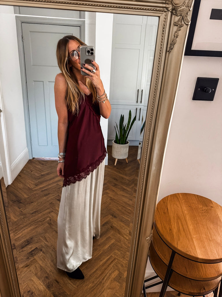 Asymmetric Lace Trim Satin Vest