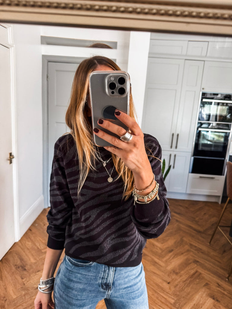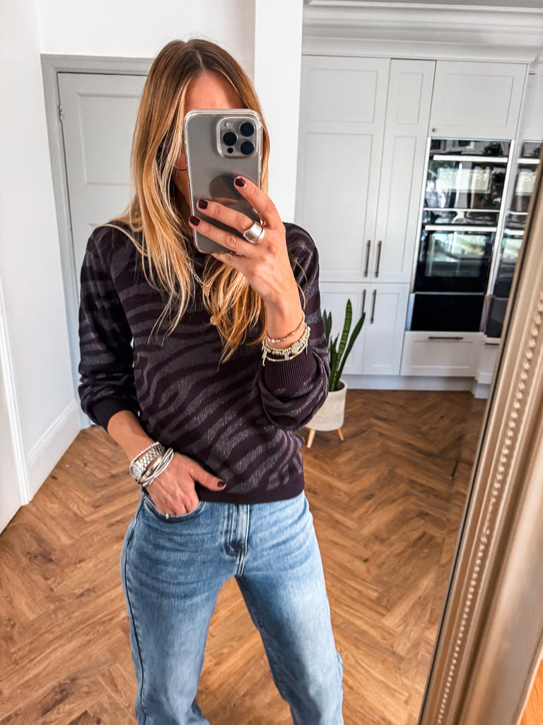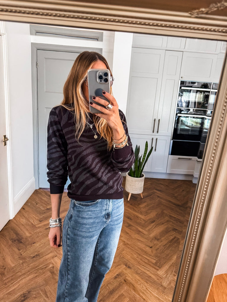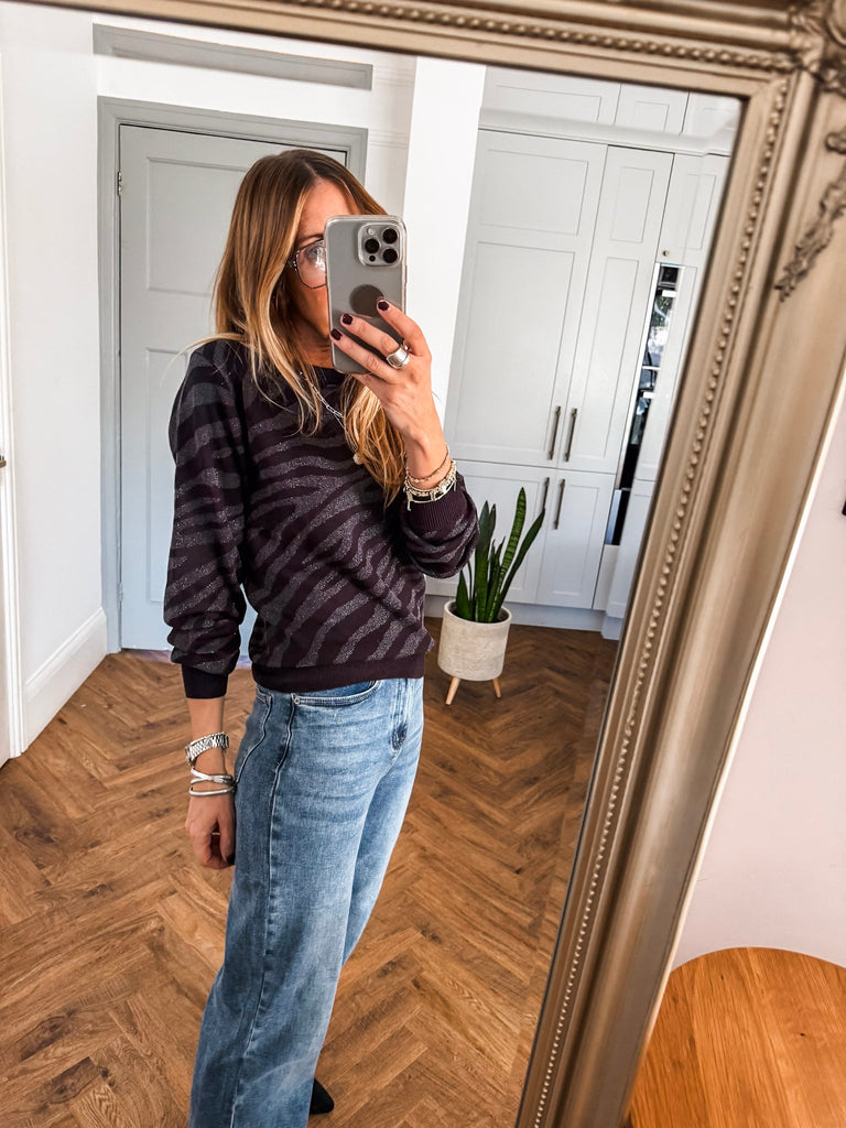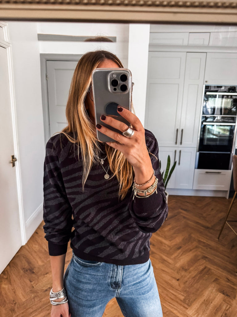 Add effortless edge to your everyday look with the B.Young Mobbe Jacquard Jumper. Its fine glitter zebra print brings a bold twist to a classic silhouette, combining comfort with standout style. Perfect for layering or wearing solo when you want casual cool with a touch of attitude.