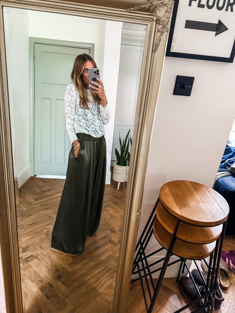 Style your look with this Bell Sleeve Lace Top, featuring a high crew neck and flowing sleeves for an effortlessly feminine feel. Crafted from delicate lace in a relaxed fit, it blends softness with subtle edge. The perfect piece to add texture and charm to any outfit.