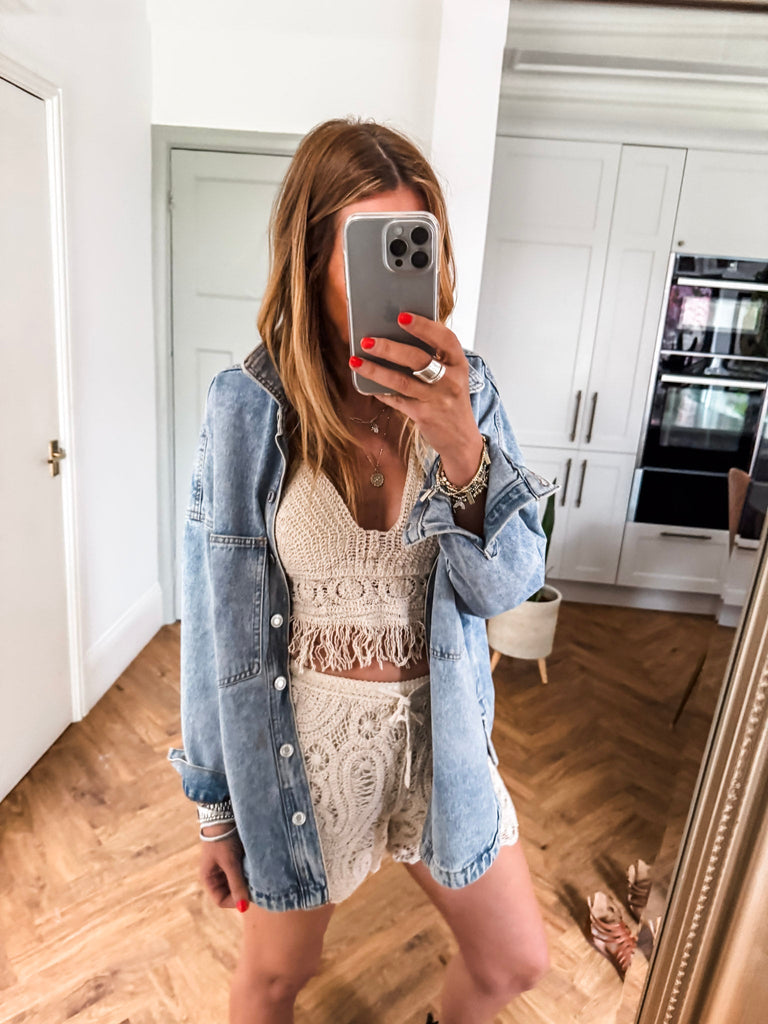 Perfect for festivals!! This handcrafted crochet bralet blends boho flair with built-in cups for effortless support. Fringe detailing adds movement and festival-ready energy. It's a bold, free-spirited piece that fuses comfort with standout style.