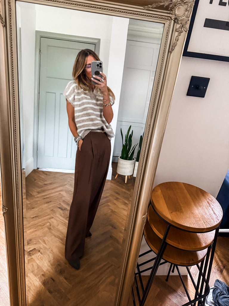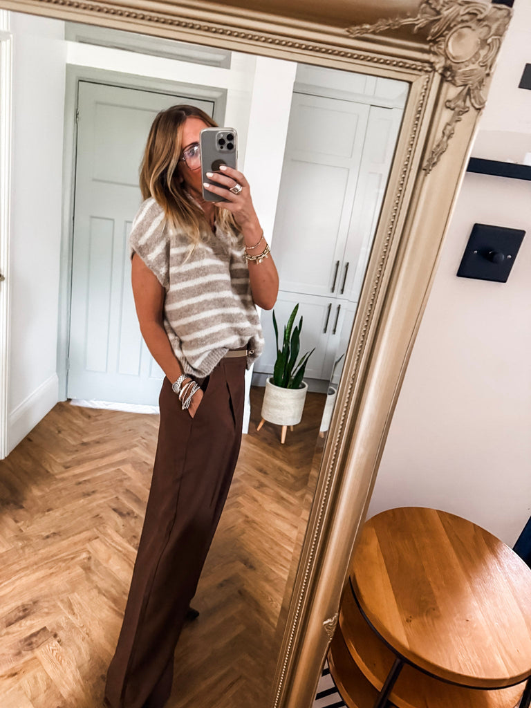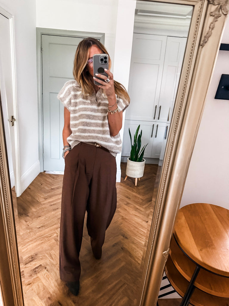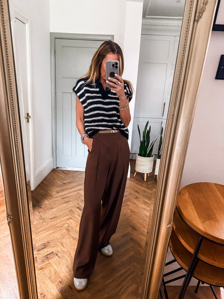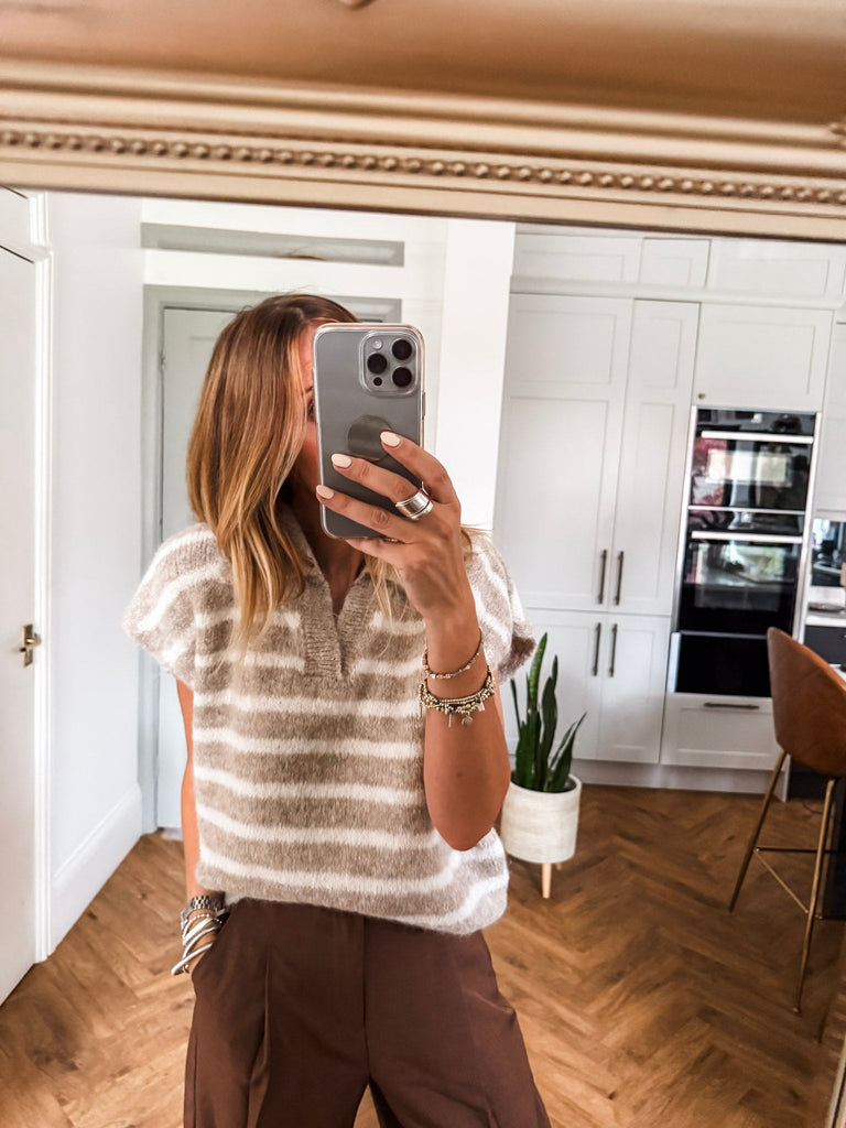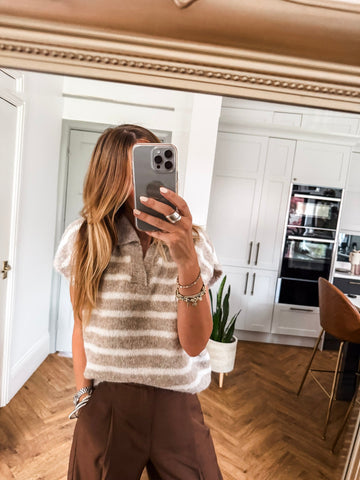 Collared Striped Knit Vest
