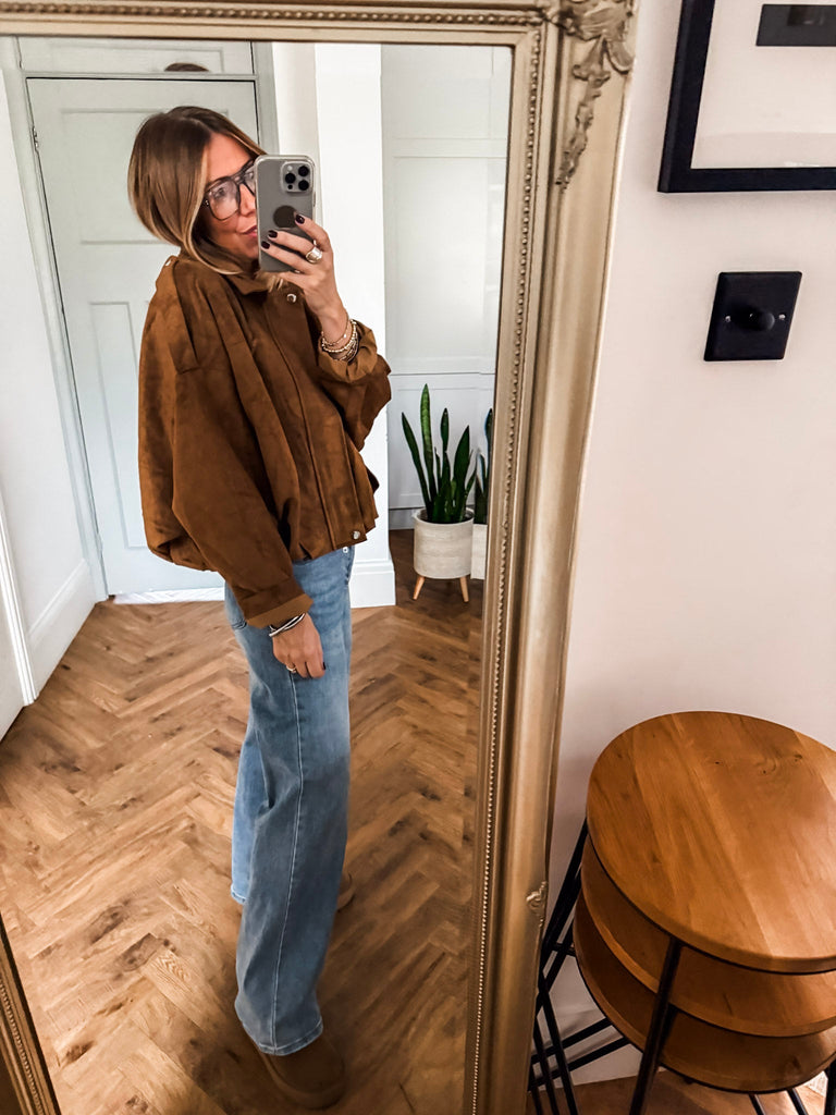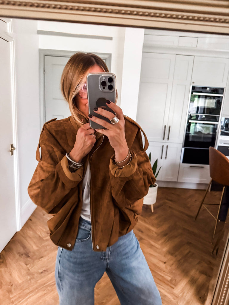 We love this jacket for its perfect balance of structure and ease. The statement buckles and wide sleeves bring an effortlessly cool vibe, while the soft suede adds a touch of luxury. It’s the kind of piece that instantly pulls any outfit together.