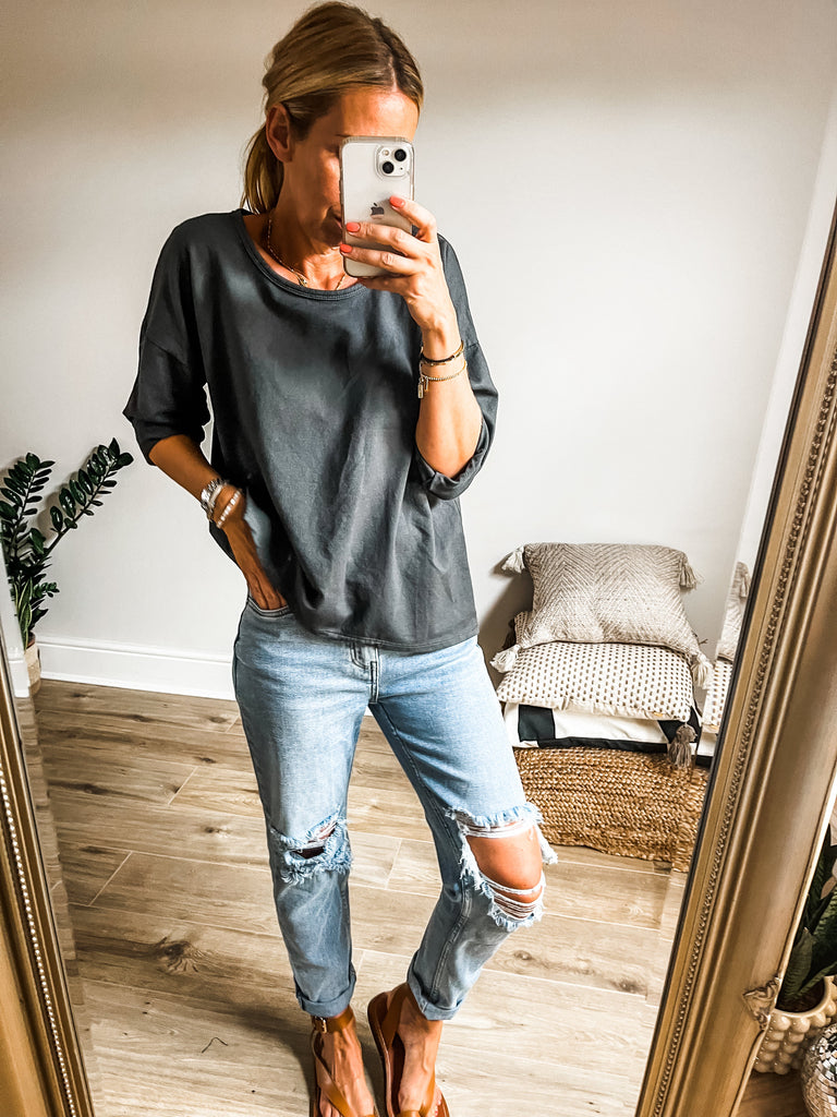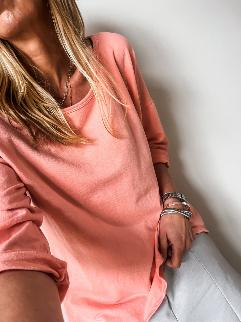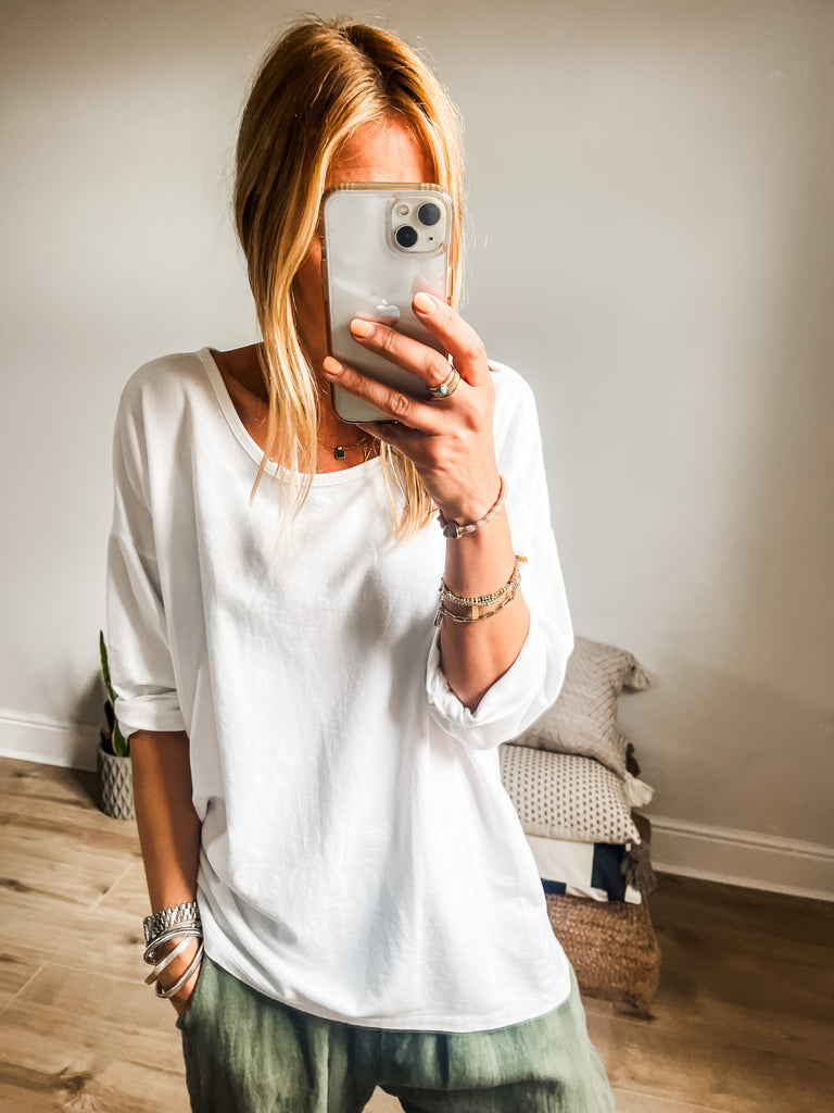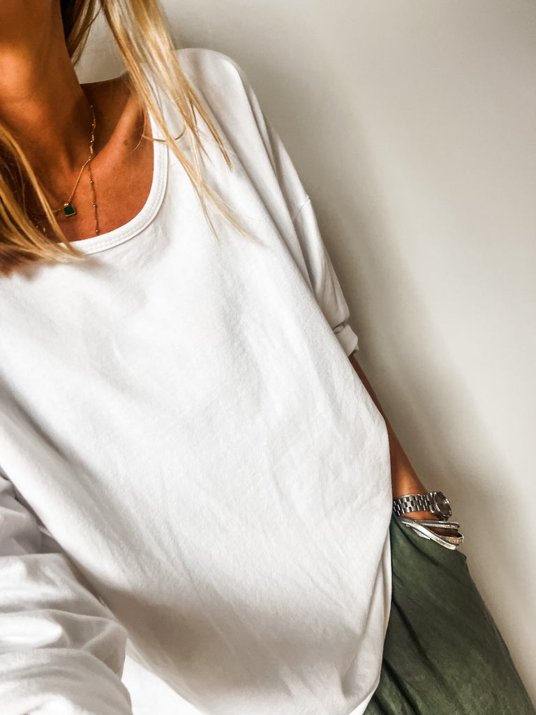 We love the super soft cotton material and the relaxed shape makes this easy to wear with anything in your wardrobe.