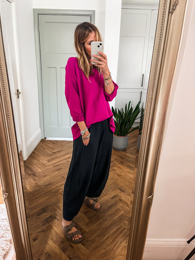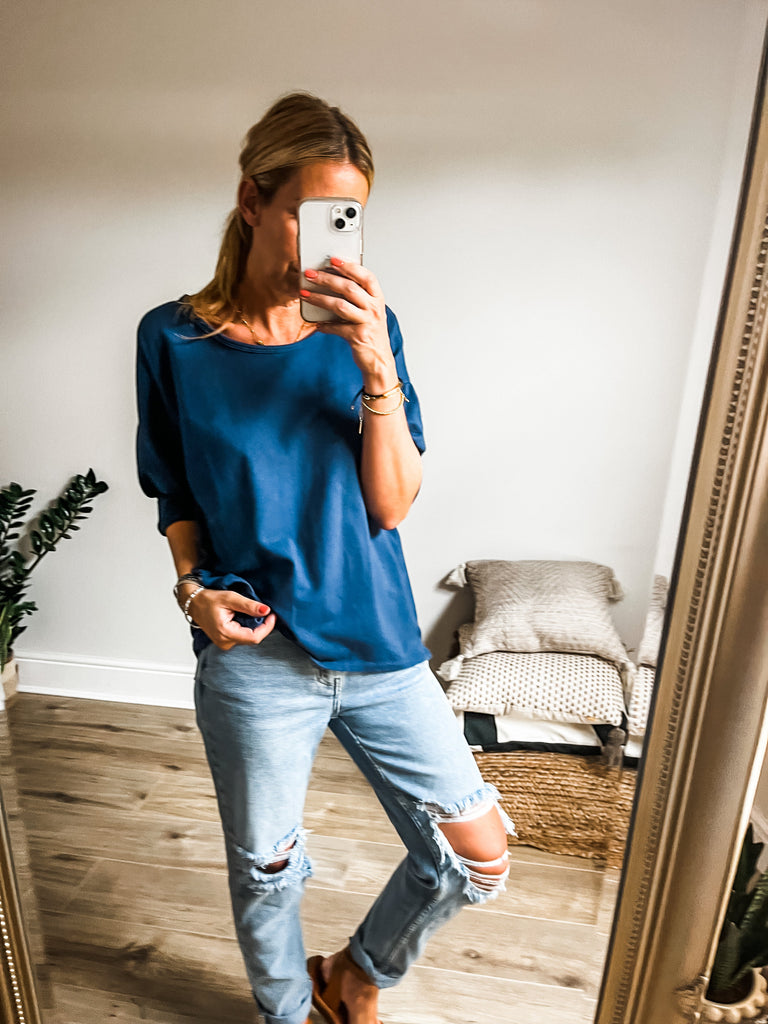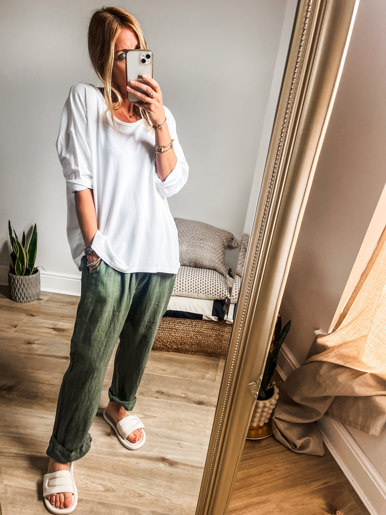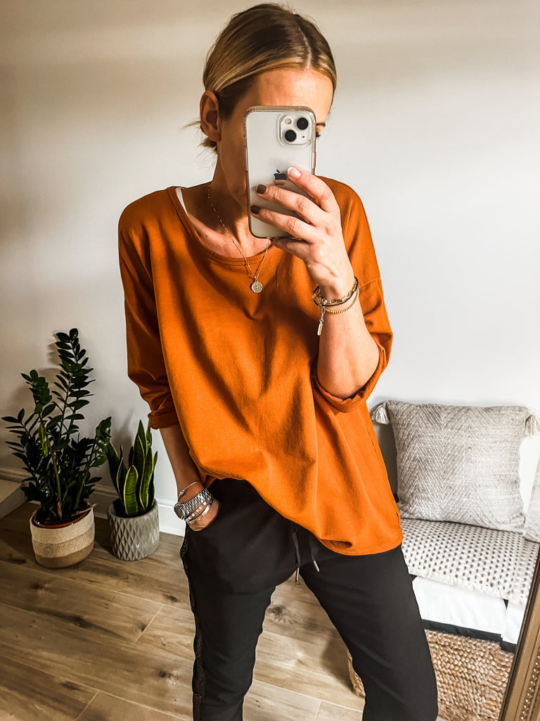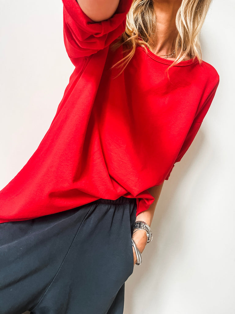 We love the super soft cotton material and the relaxed shape makes this easy to wear with anything in your wardrobe.