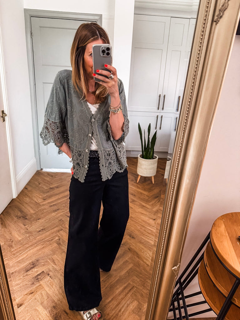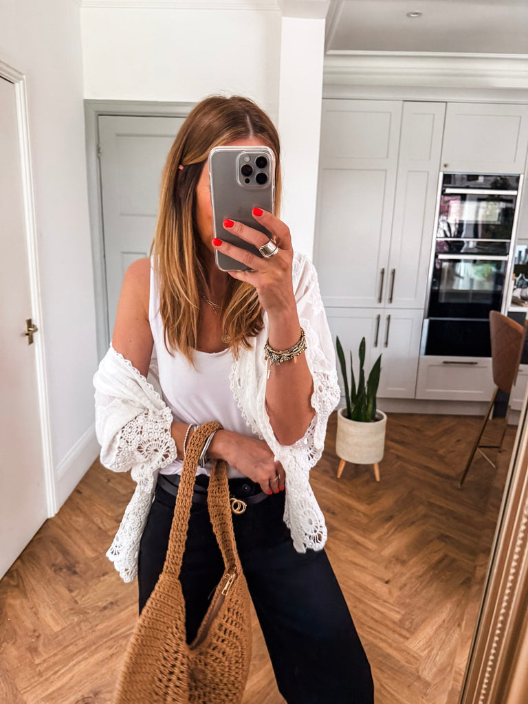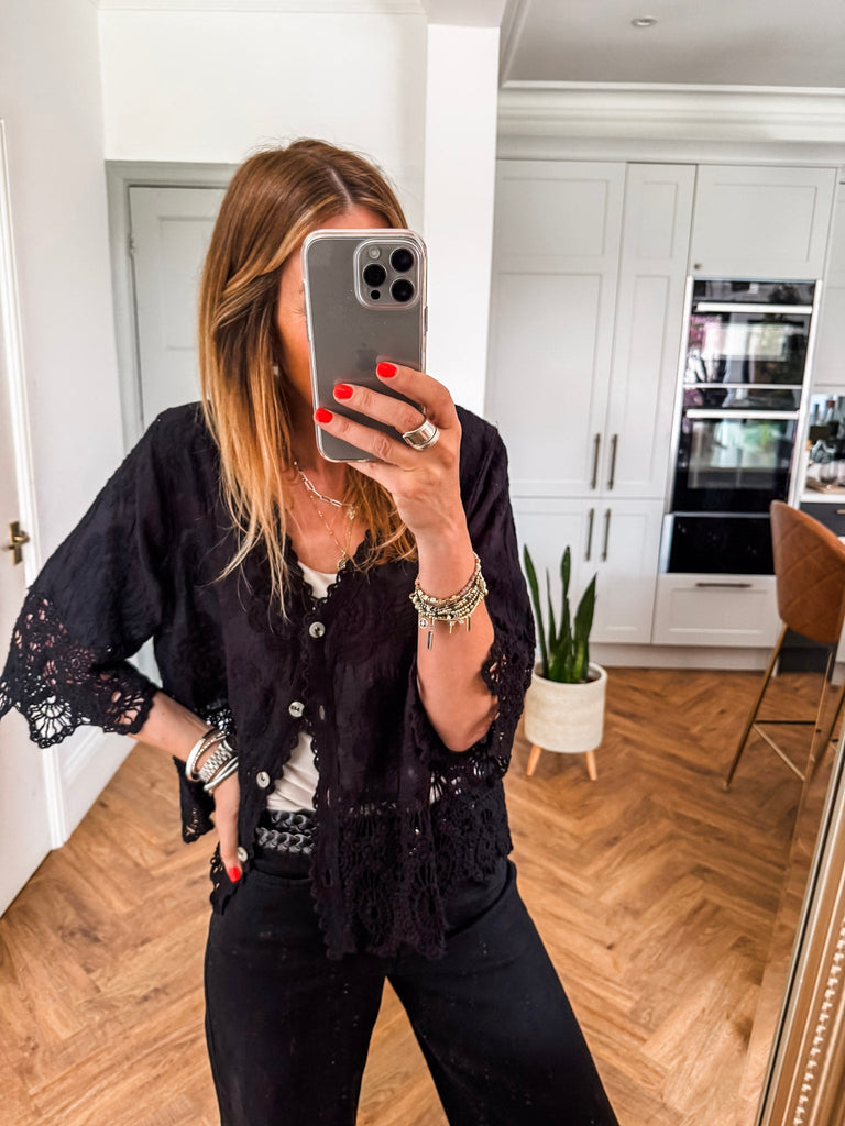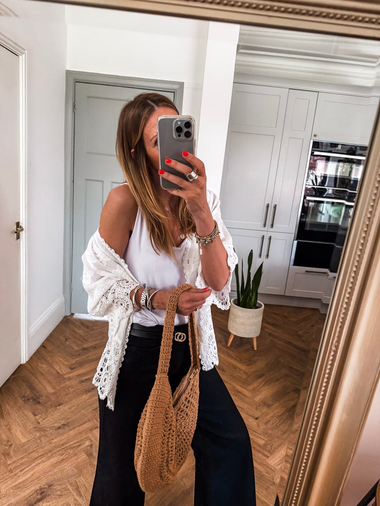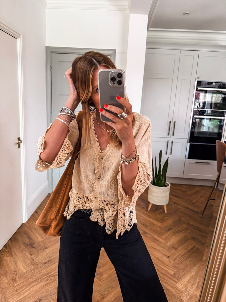 We love this top for its blend of relaxed comfort and playful detailing. The crochet and broderie accents give it a unique, handcrafted feel that stands out effortlessly. It’s the perfect piece to elevate your everyday style with ease.