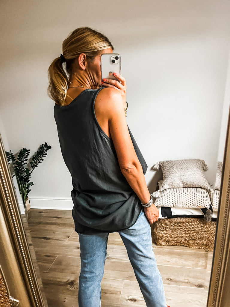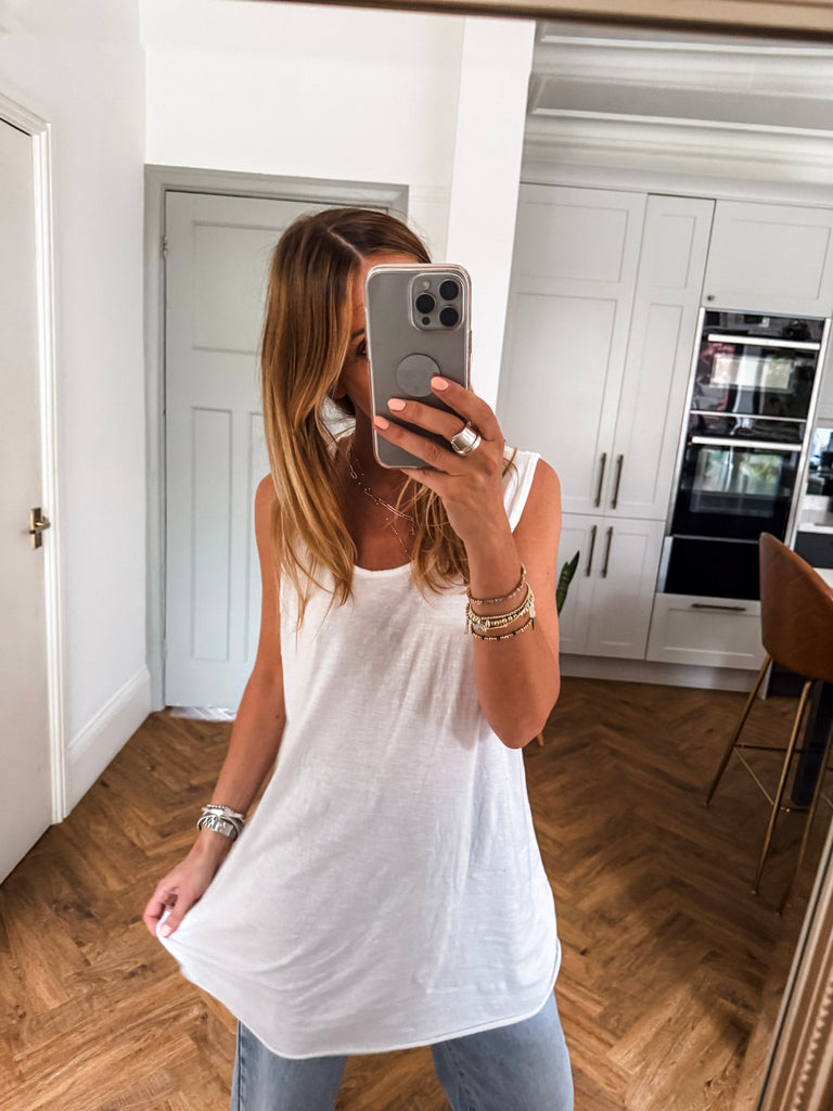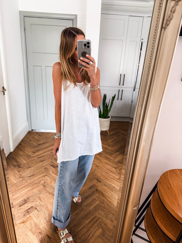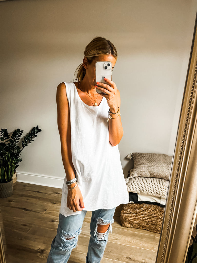 This is your new summer essential. The beautiful curved hem design of this tank along with the scoop neckline and thicker straps gives this basic top a contemporary feel. These will go with any bottoms you have in your wardrobe.
