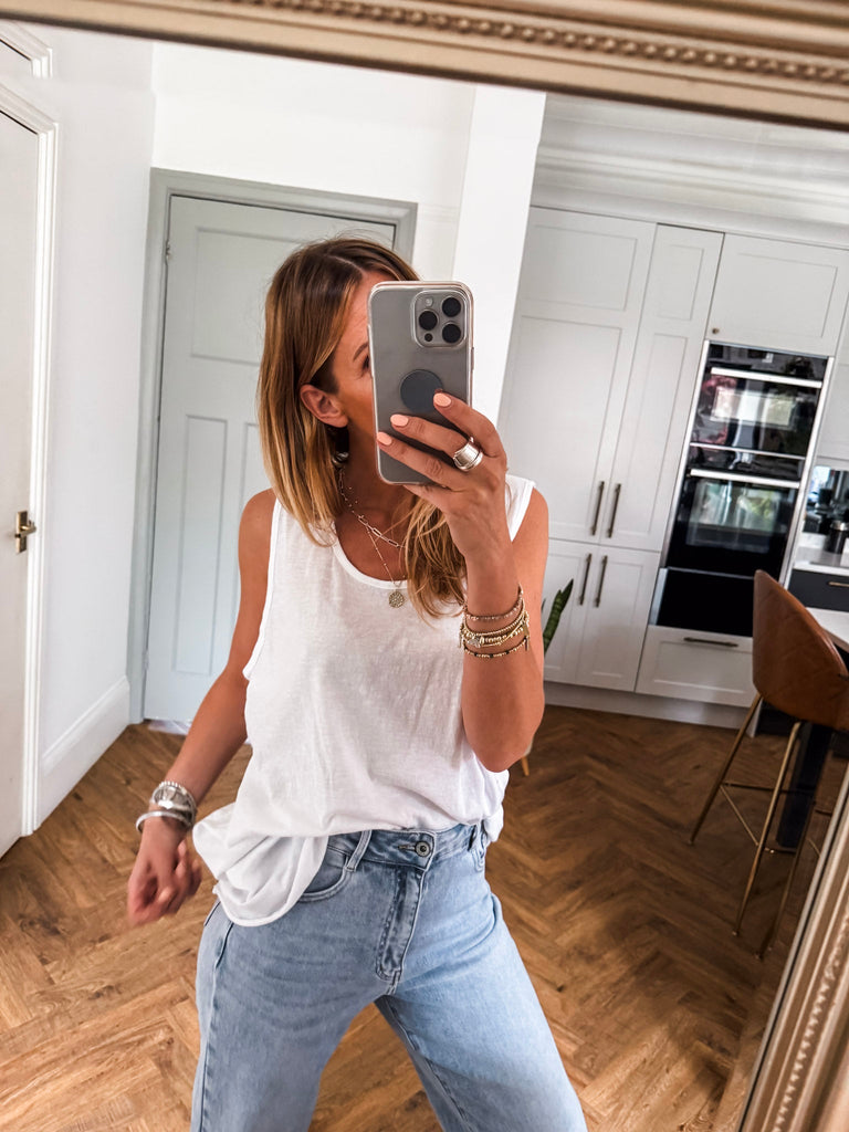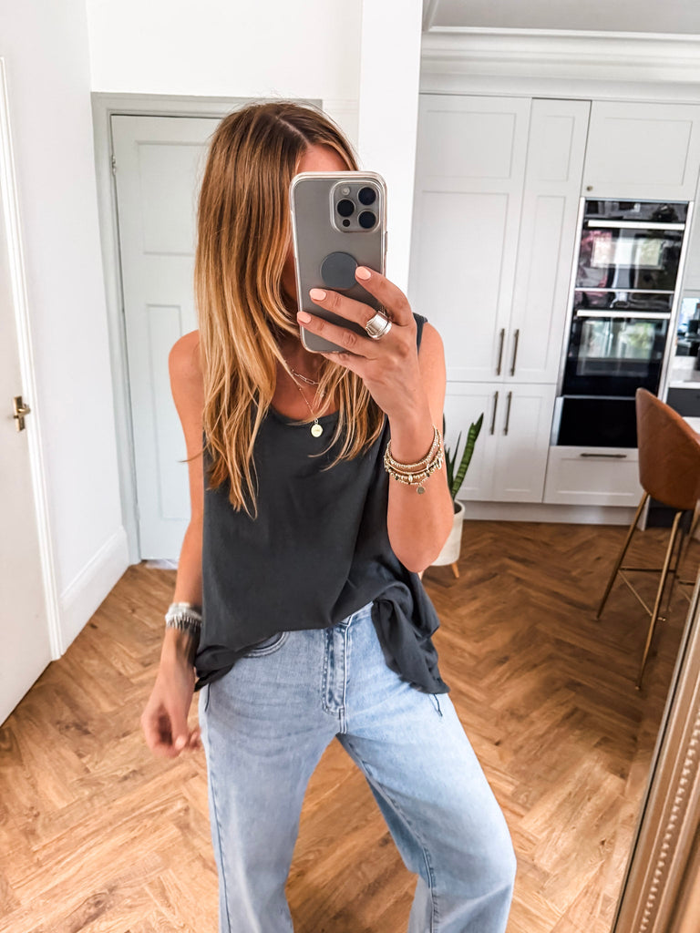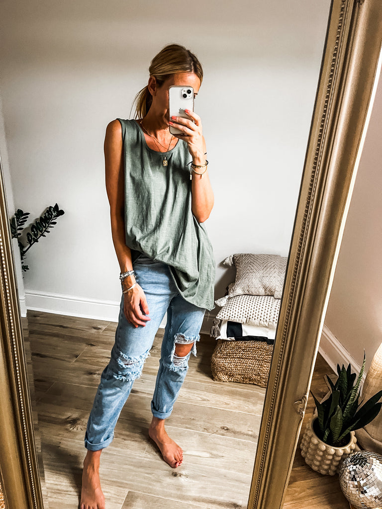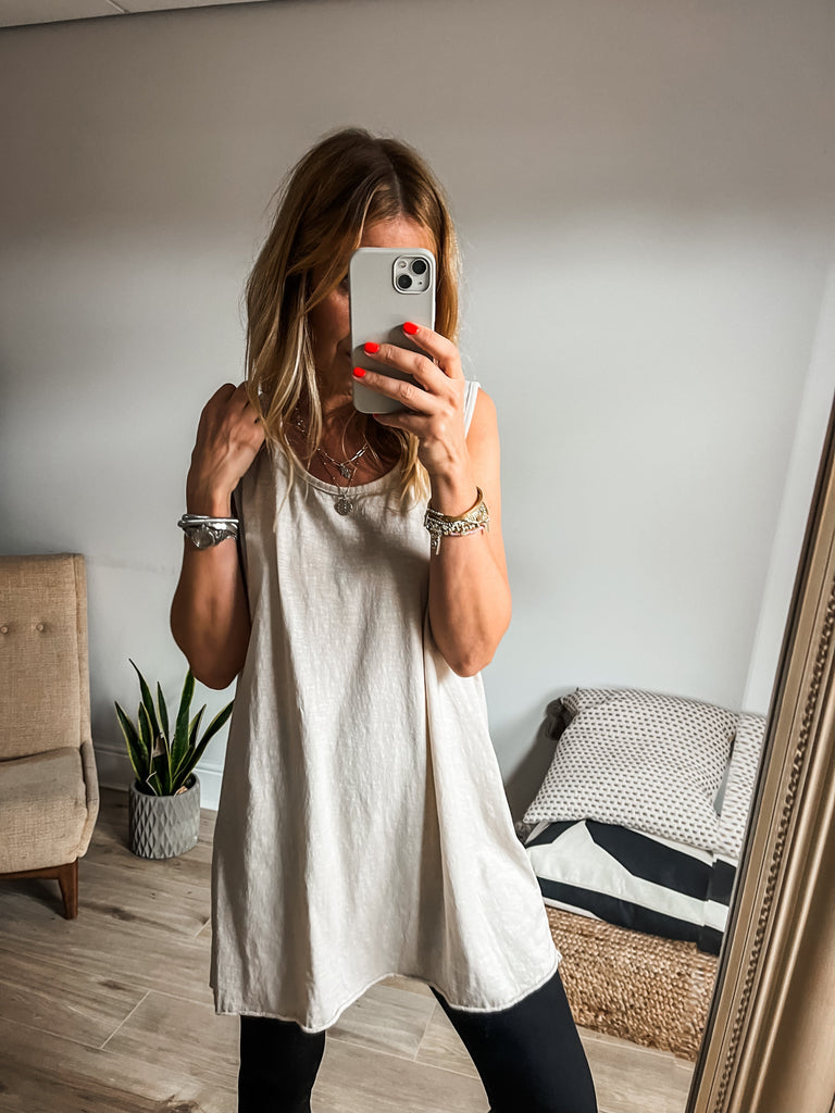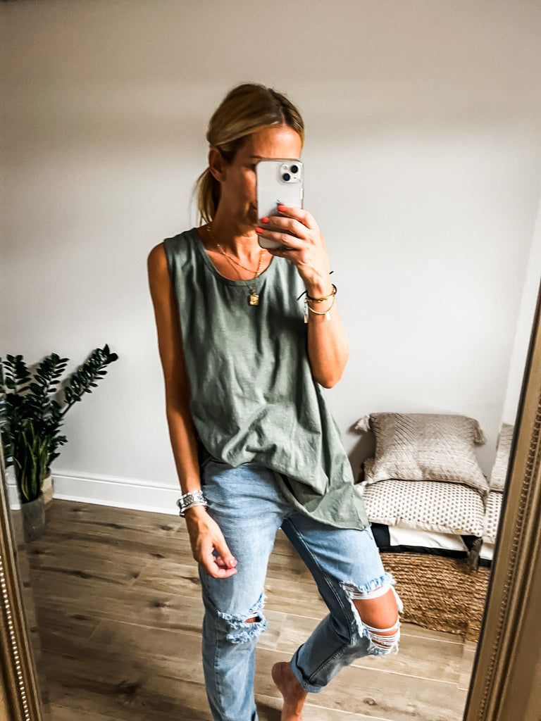 This is your new summer essential. The beautiful curved hem design of this tank along with the scoop neckline and thicker straps gives this basic top a contemporary feel. These will go with any bottoms you have in your wardrobe.
