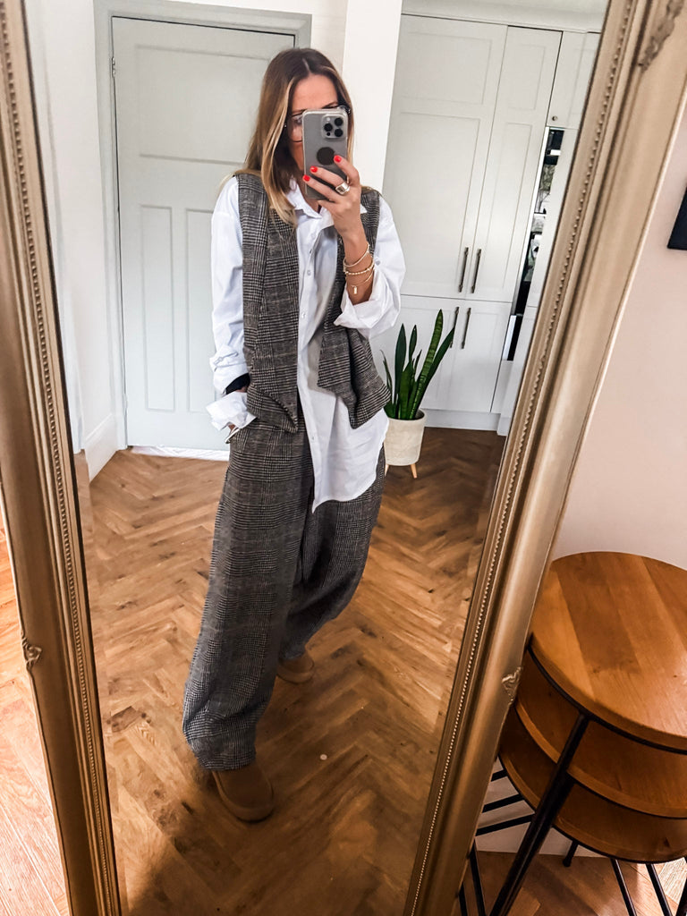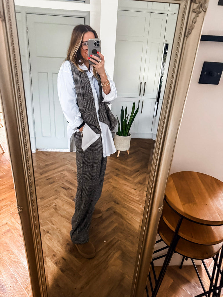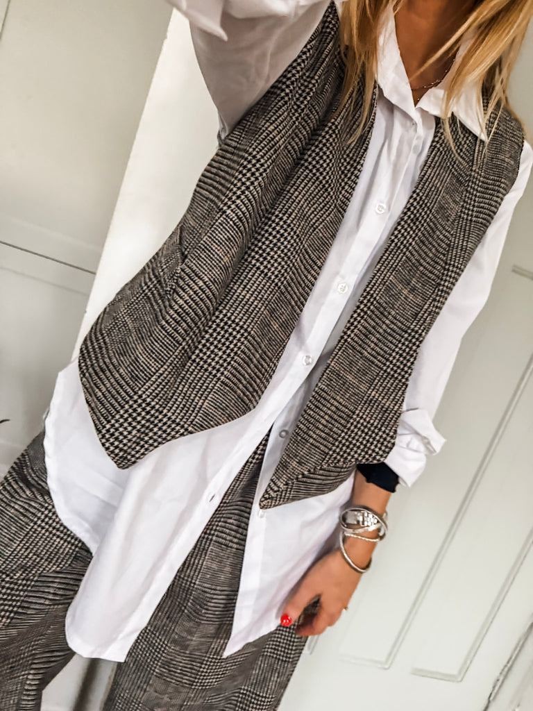 Stay sharp in our Dogtooth Checked Waistcoat, a sleek layer that instantly elevates any look. Its timeless pattern, collar detail, and faux pockets bring polished sophistication. A versatile must-have for creating effortlessly chic, modern outfits. Matching trousers available!