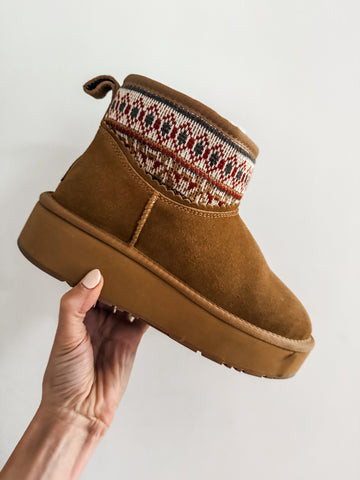 Meet the Everau Plover Platform Boot — a whole lot of comfort. Made from premium sheepskin with a cool patterned trim at the top, it’s the boot that takes cosy to a new level of chic. The chunky platform sole gives you extra lift while keeping things effortlessly wearable — stylish, soft, and seriously cool.