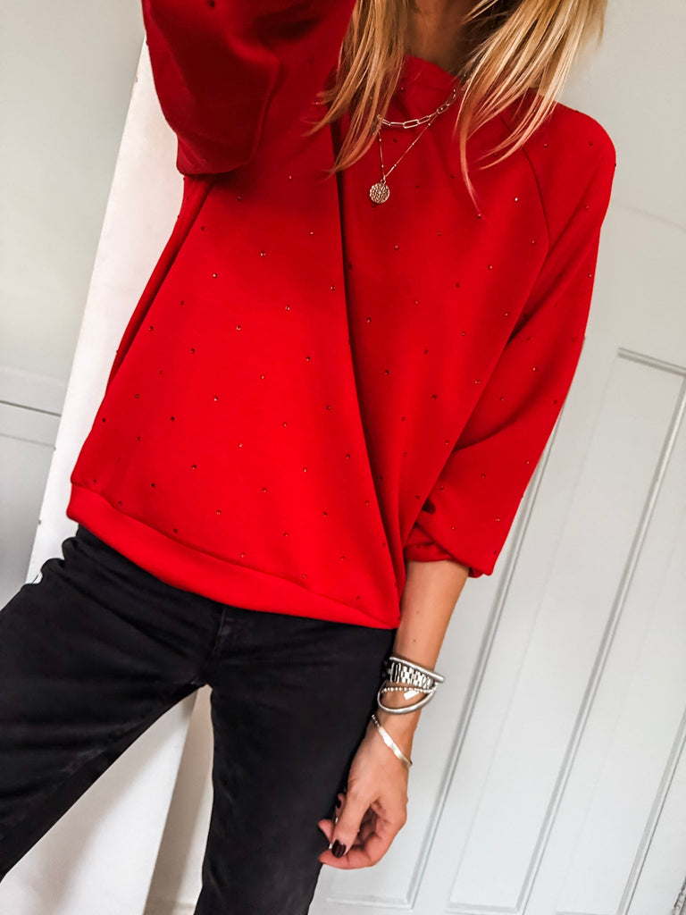 Stay cozy and cool in the ICHI Amias Sweatshirt , designed with a relaxed fit and soft, fabric for all-day comfort. The diamante adds effortless edge to your off-duty look. It’s the perfect throw-on piece for laid-back style with personality.