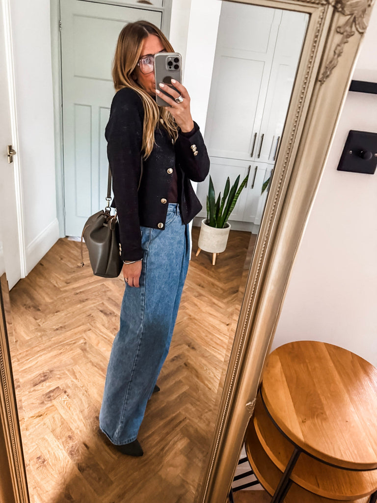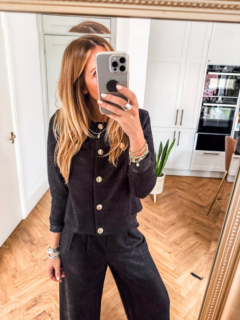 Style the ICHI Kate Gleam Jacket over a crisp white tee and straight-leg jeans for an effortlessly chic look. Dress it up with tailored trousers and heels for evening plans. Add simple gold jewellery to complement the subtle shimmer