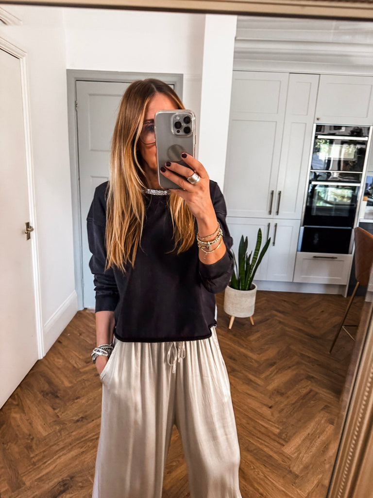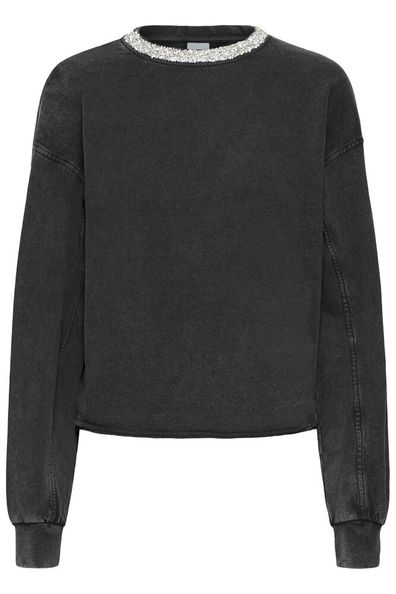 Stay cozy and cool in the ICHI Missa Sweatshirt , designed with a relaxed fit and soft, fabric for all-day comfort. The crystal neckline adds effortless edge to your off-duty look. It’s the perfect throw-on piece for laid-back style with personality. Fabric is 100% Cotton