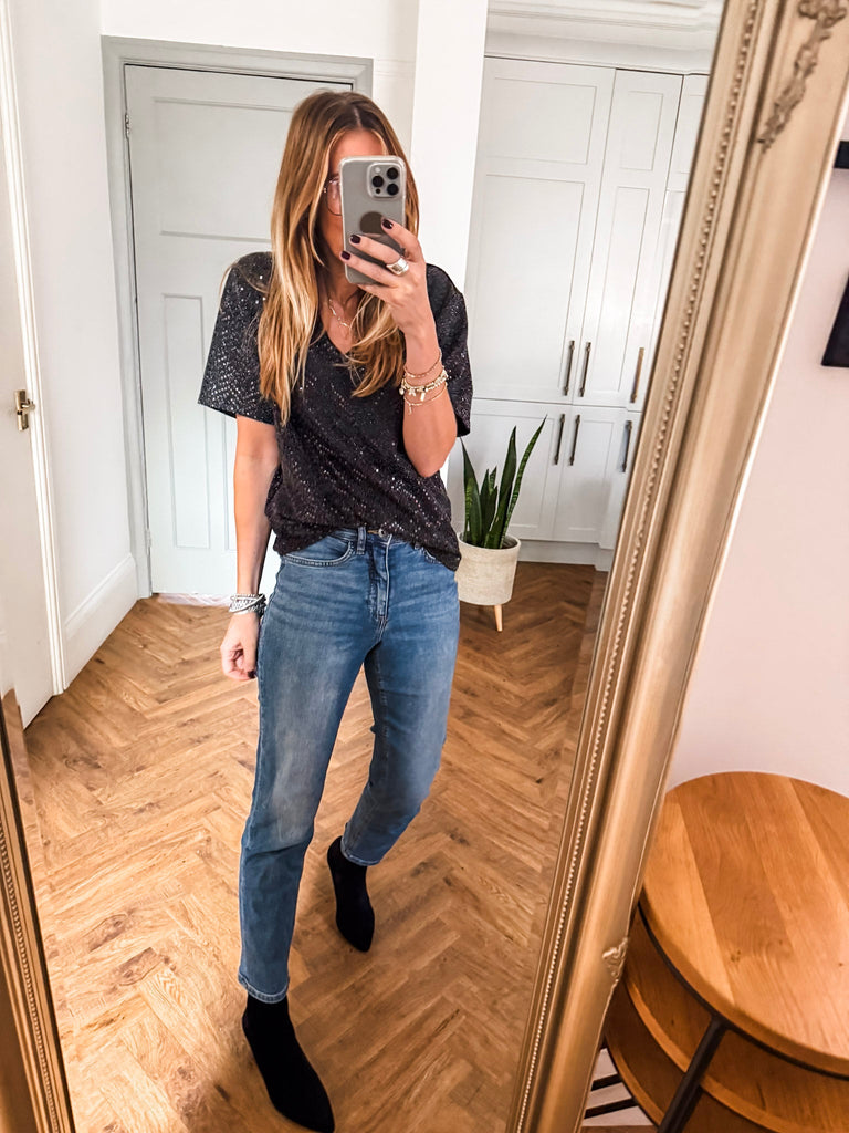 Pair it with high-waisted jeans or a sleek skirt for a show-stopping look. Add statement heels and bold accessories to elevate the sparkle. For a festival-ready vibe, layer with denim or leather and finish with fun, playful jewelry.