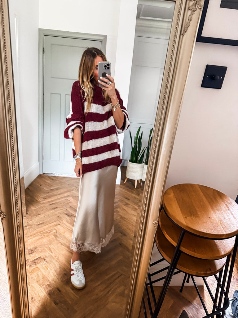 Stay effortlessly chic with our Satin Lace Skirt, crafted from luxurious satin with an elasticated waist for a comfortable fit. The elegant midi length adds a touch of sophistication to any outfit. Perfect for any occasion, it’s a must-have piece for a polished, stylish look with lace trim!